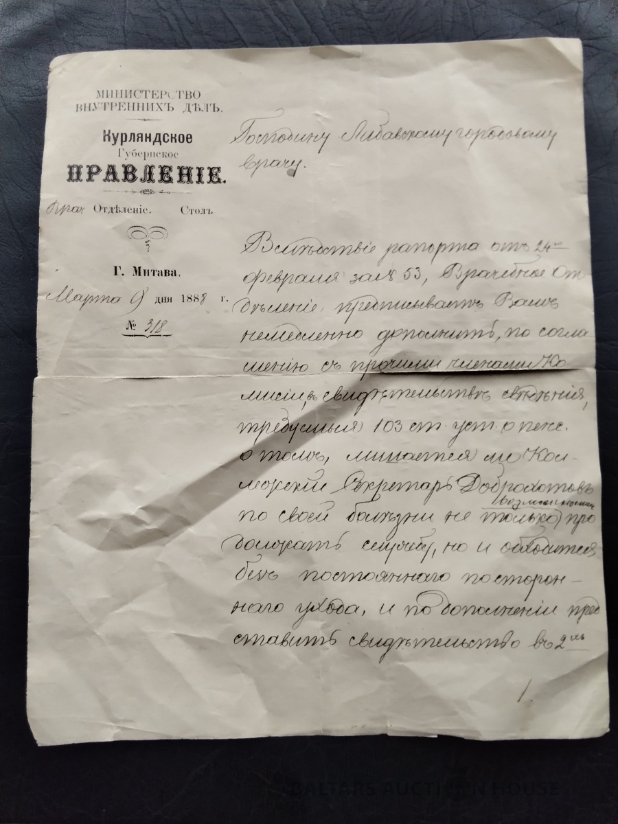 1888 gada dokuments Iekšlietu ministrija