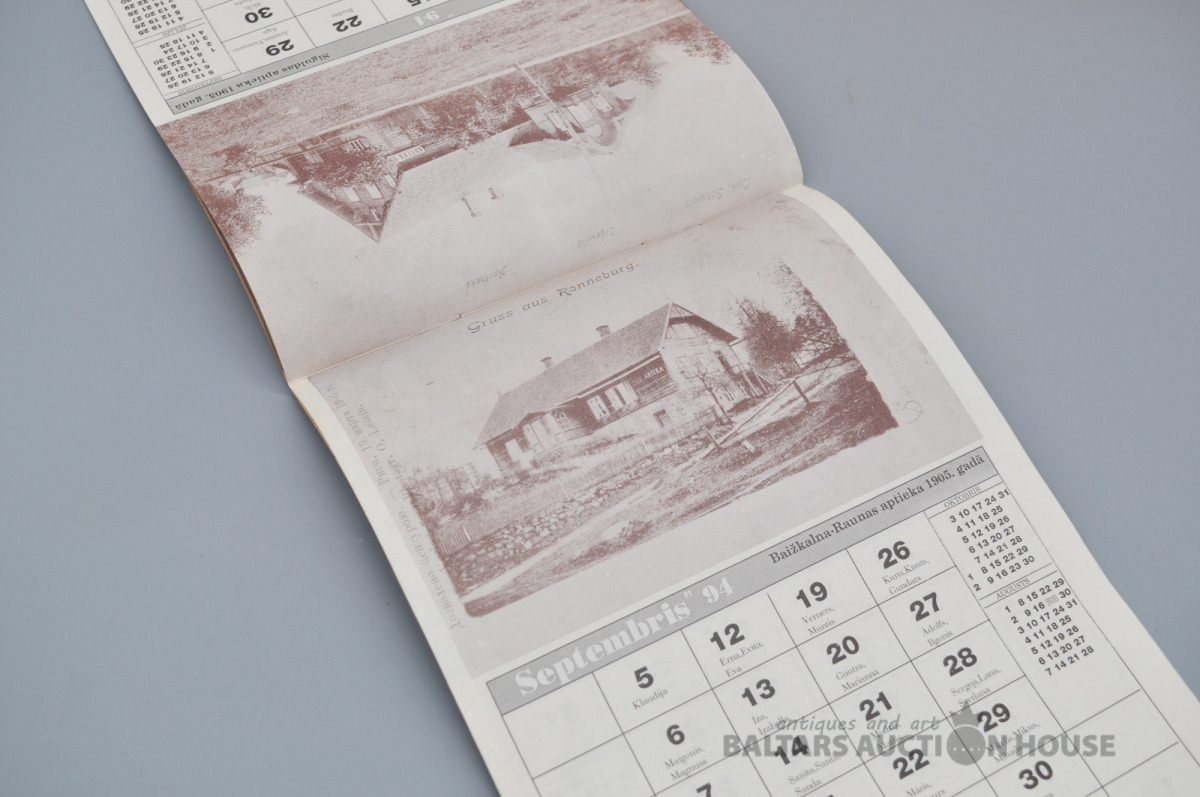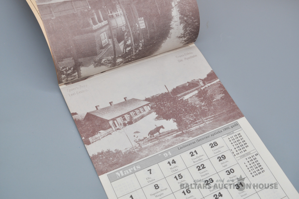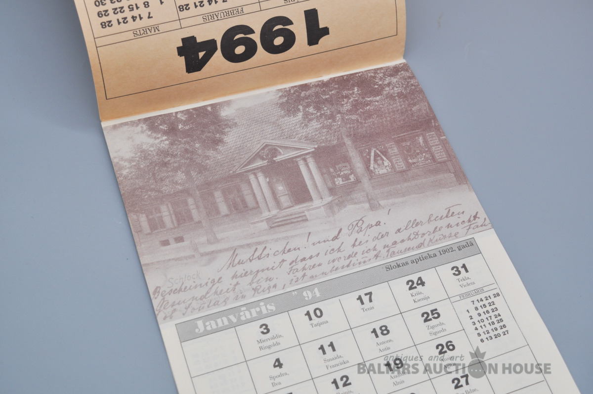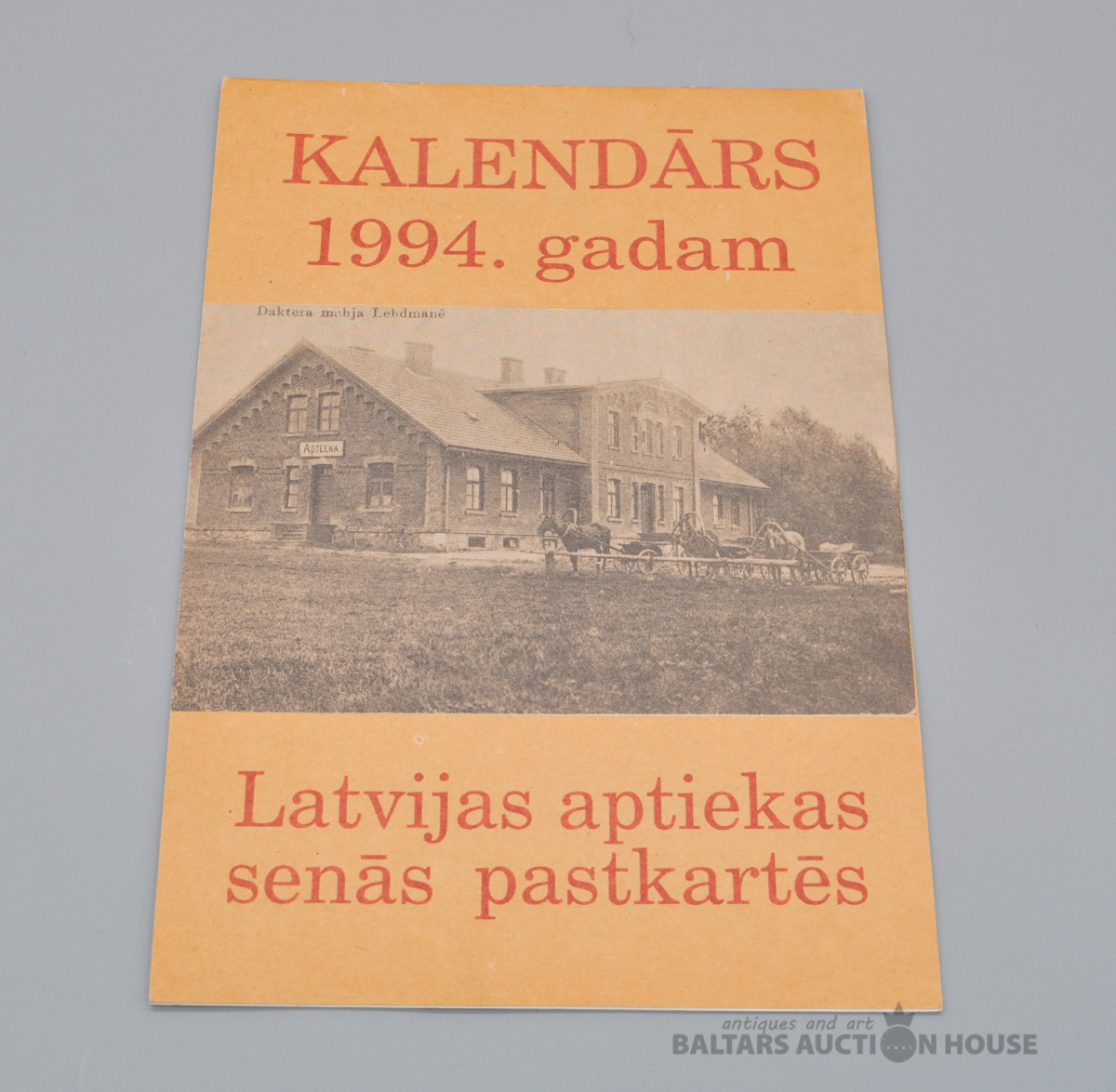 Sienas kalendārs 1994 gadam. Latvijas aptiekas senās pastkartēs. 20x29 cm