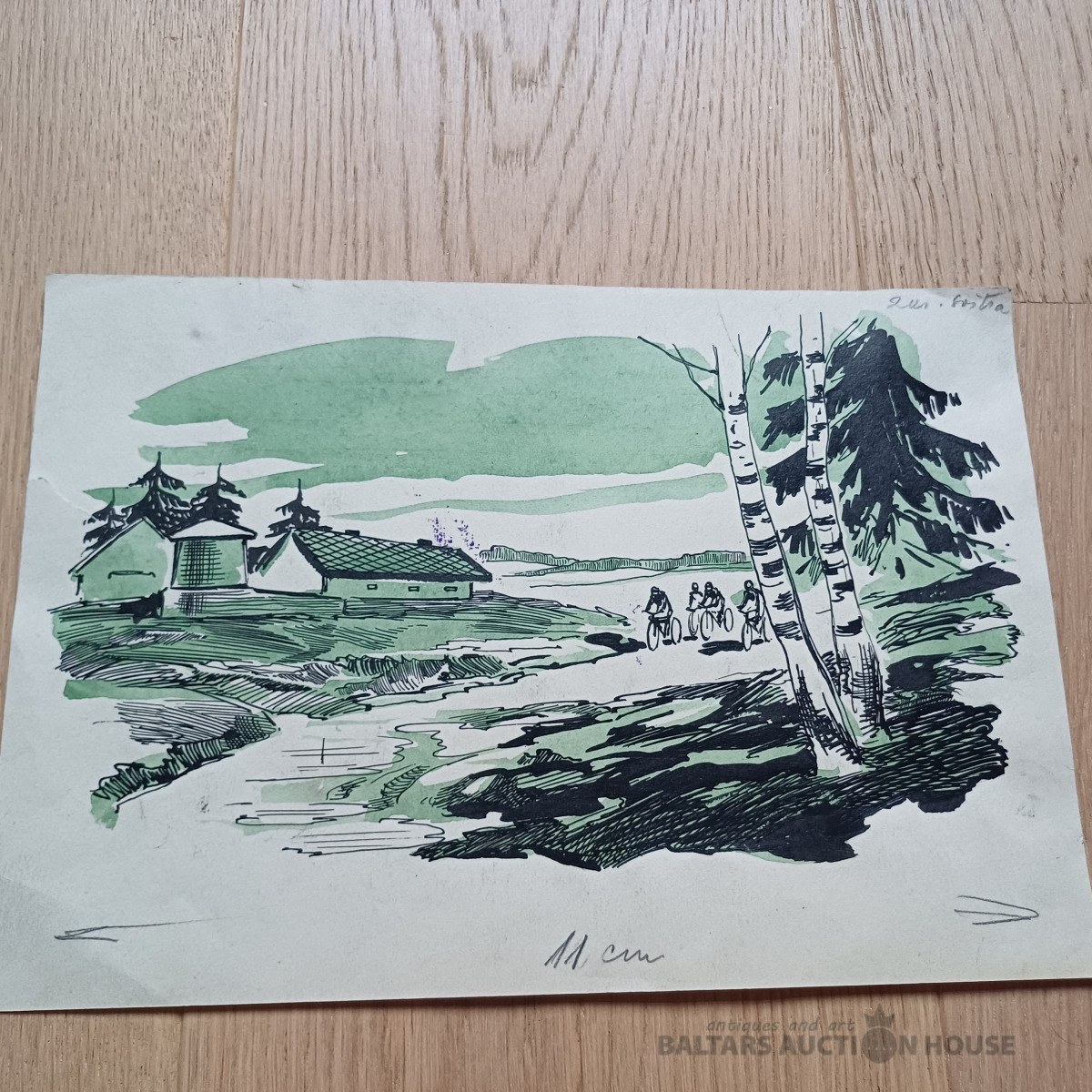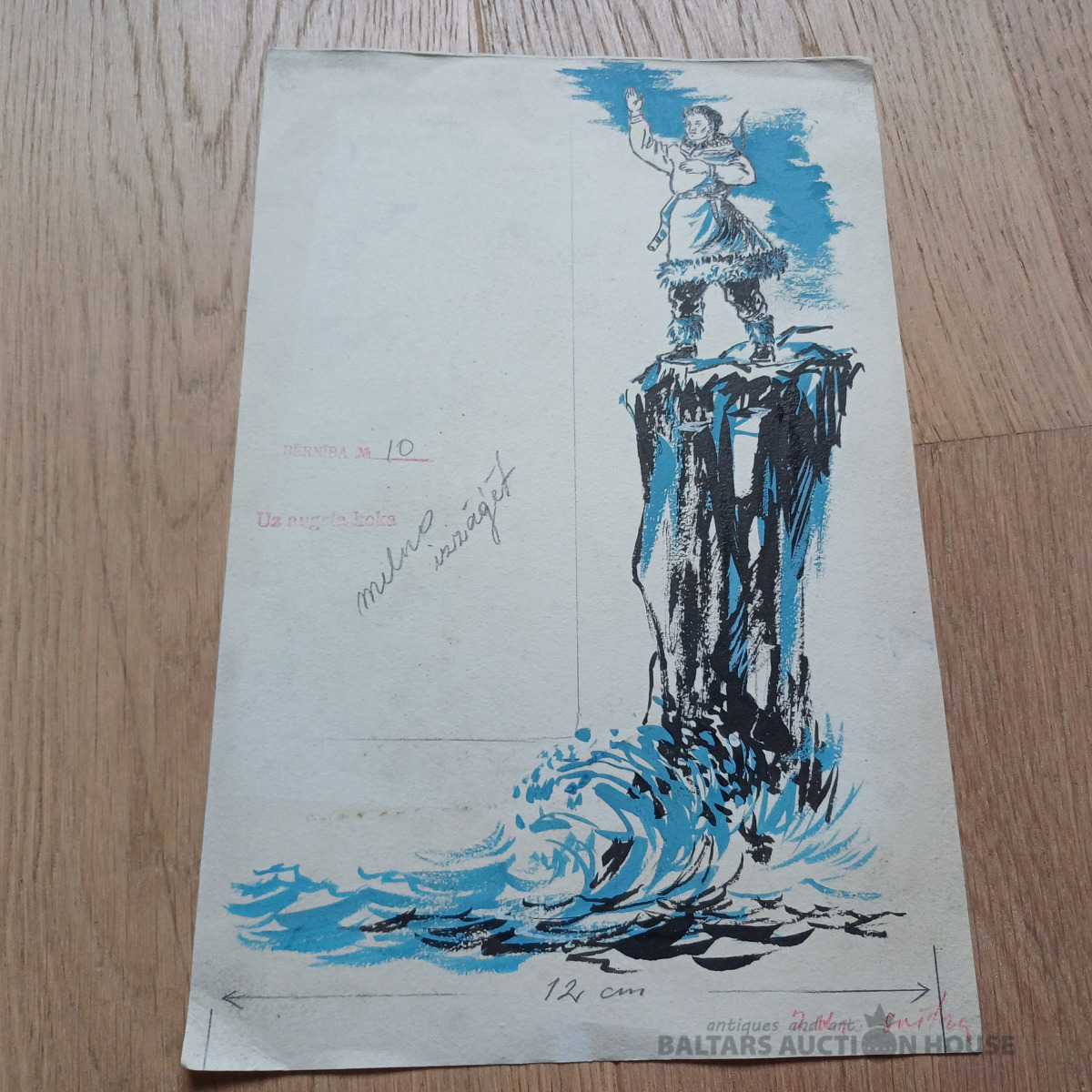 Ilustrācijas oriģinālzīmējums izdevumam Bērnība 1957. g.