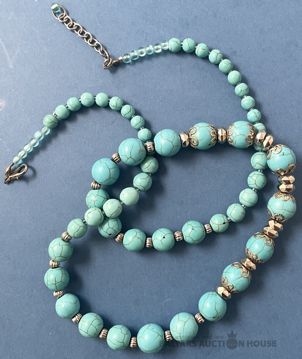 Krelles. Tirkīzs. Svars 53,35 g. l=60 cm