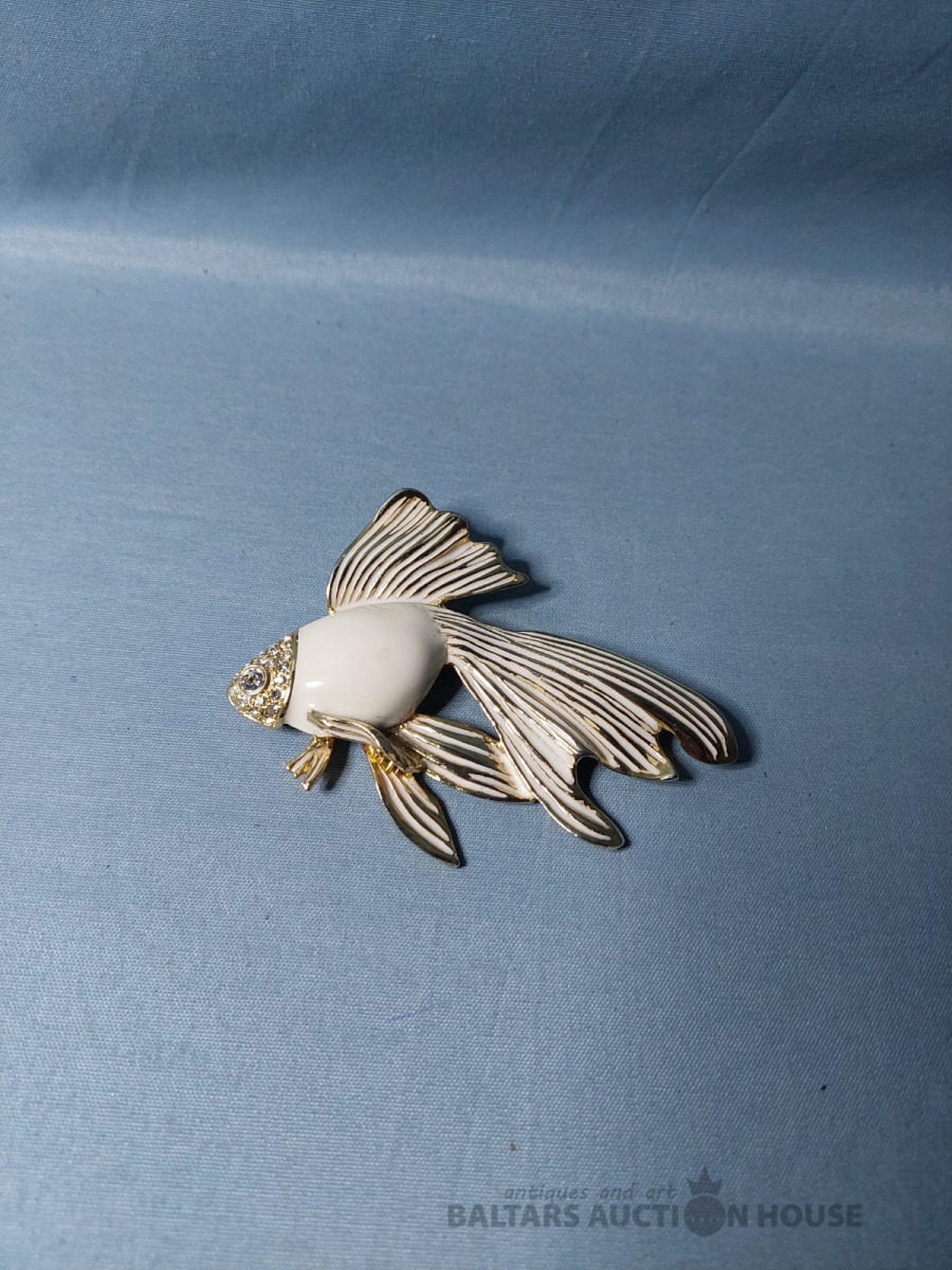 Broša zivtiņa metāls, emalja. Izm.9x6cm.