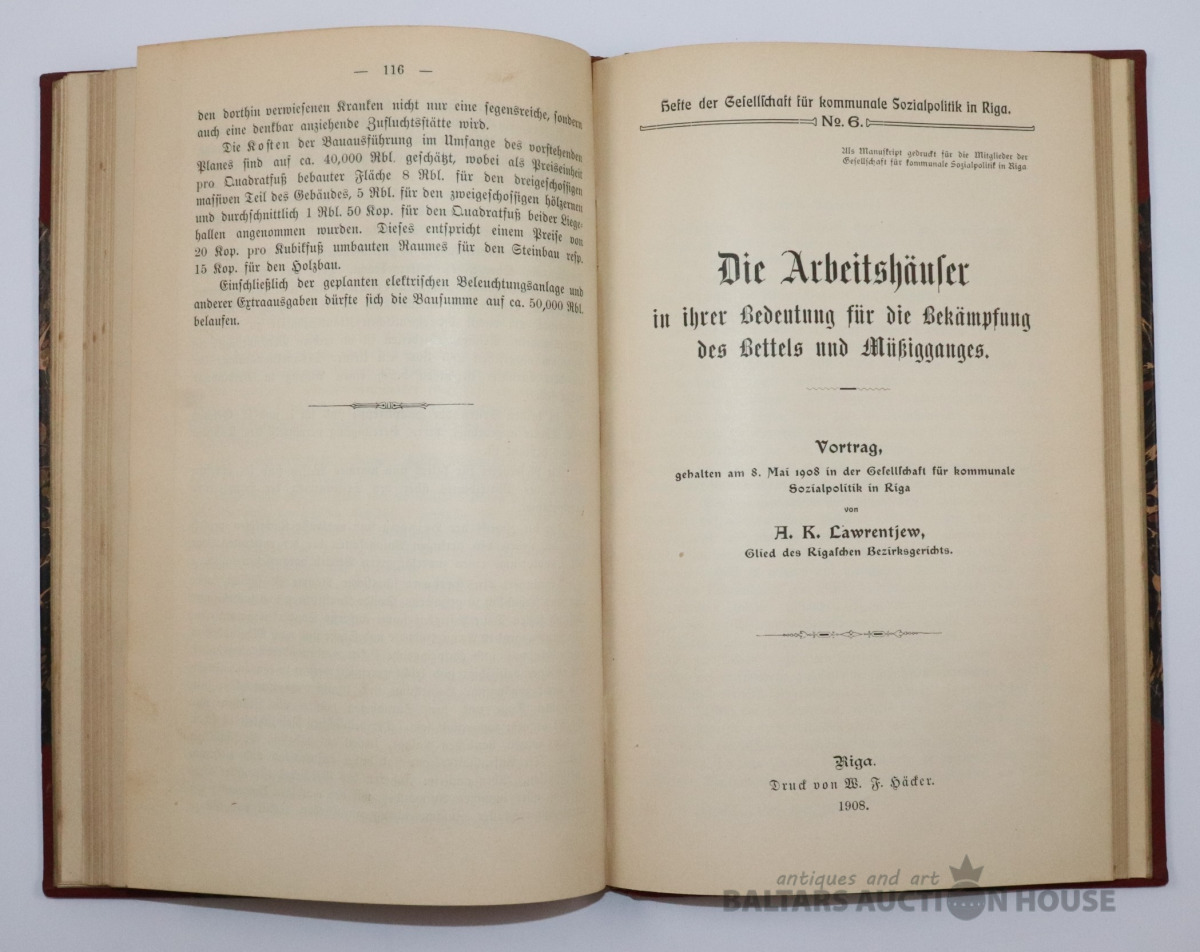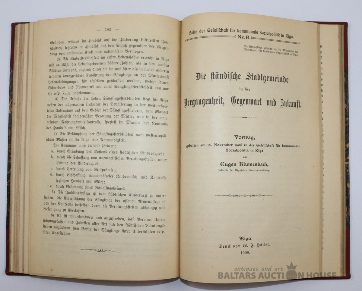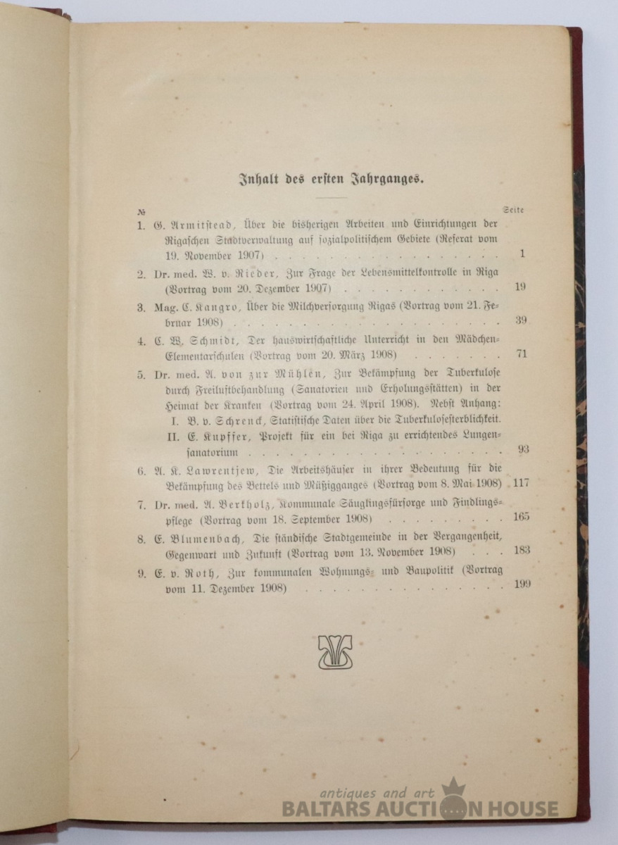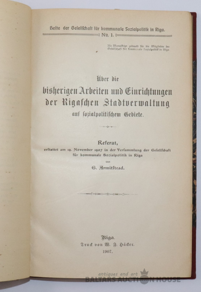 Hefte der Gesellschaft für Kommunale Sozialpolitik in Riga. 1907/08. Nr. 1.-9. W.J. Häcker, 1909.