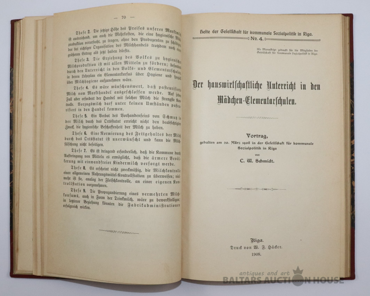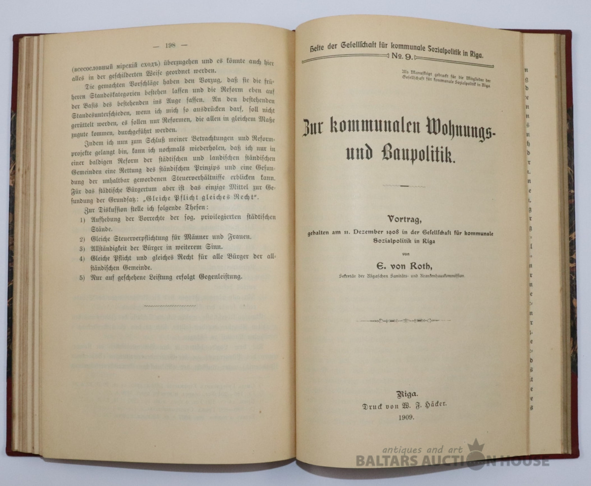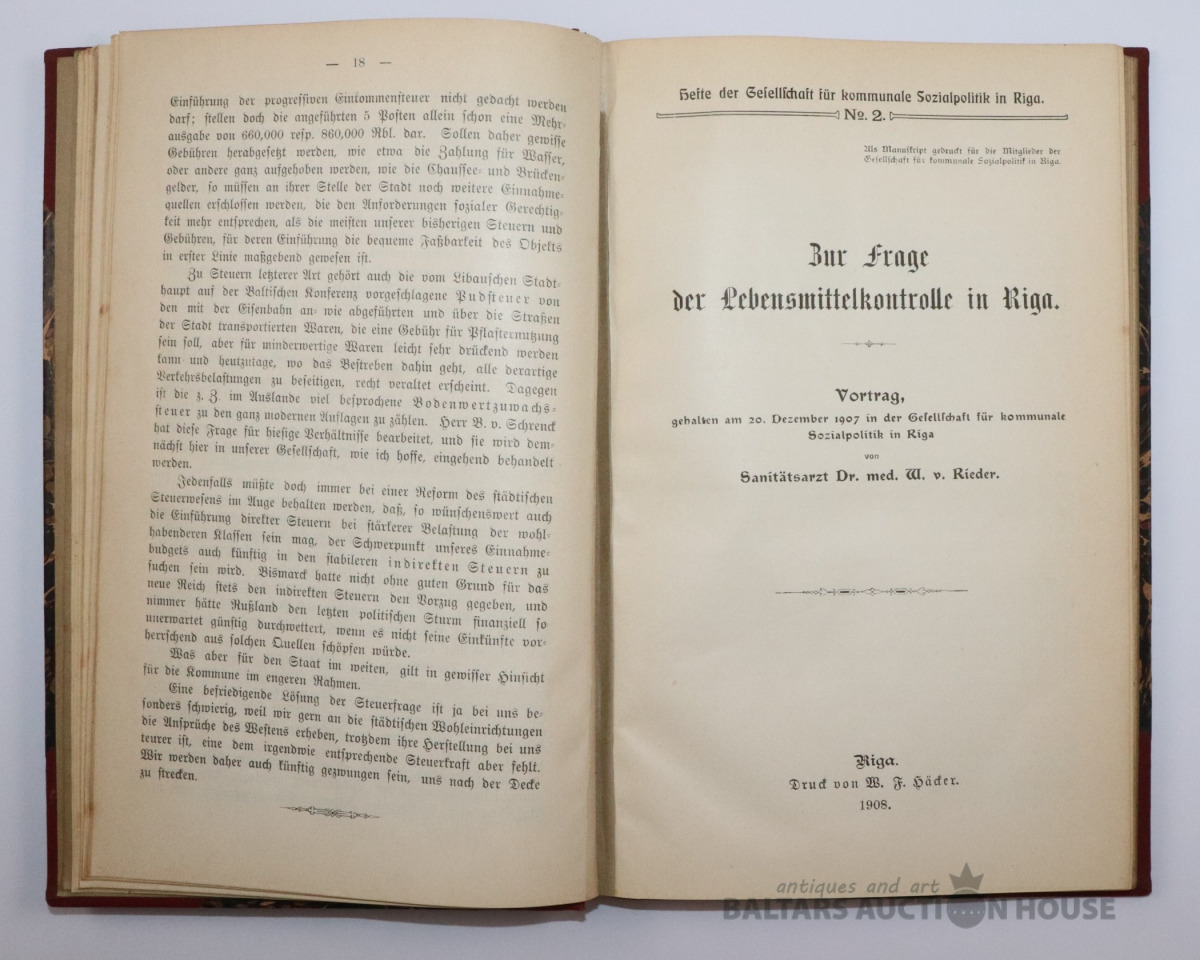 Hefte der Gesellschaft für Kommunale Sozialpolitik in Riga. 1907/08. Nr. 1.-9. W.J. Häcker, 1909.