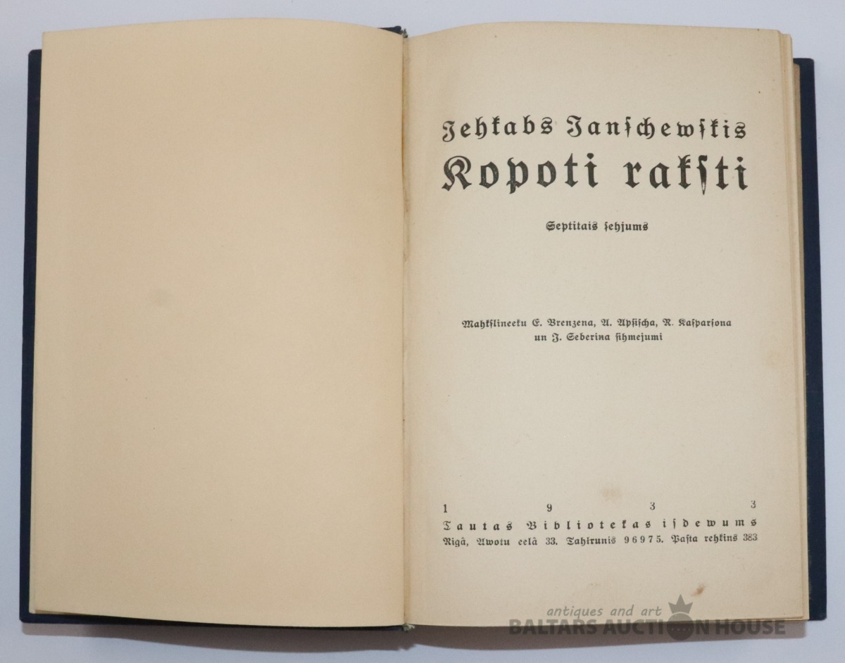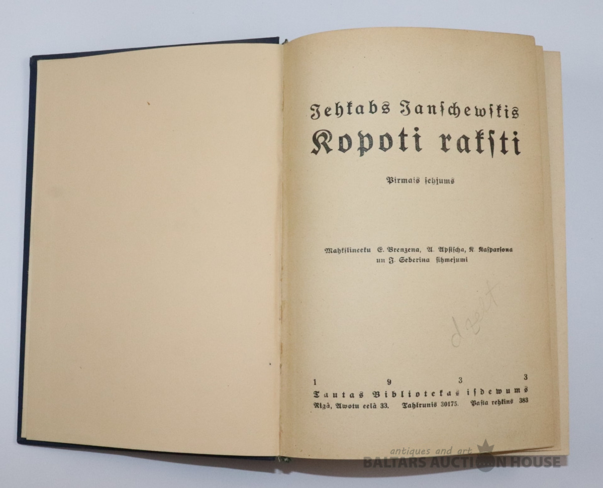 Jēkabs Janševskis KOPOTI RAKSTI, 1933. g. 1., 2., 3. sējums. Ar E. Brencēna, Al. Apsīša, R. Kasparsona un I. Zeberiņa ilustrācijām
