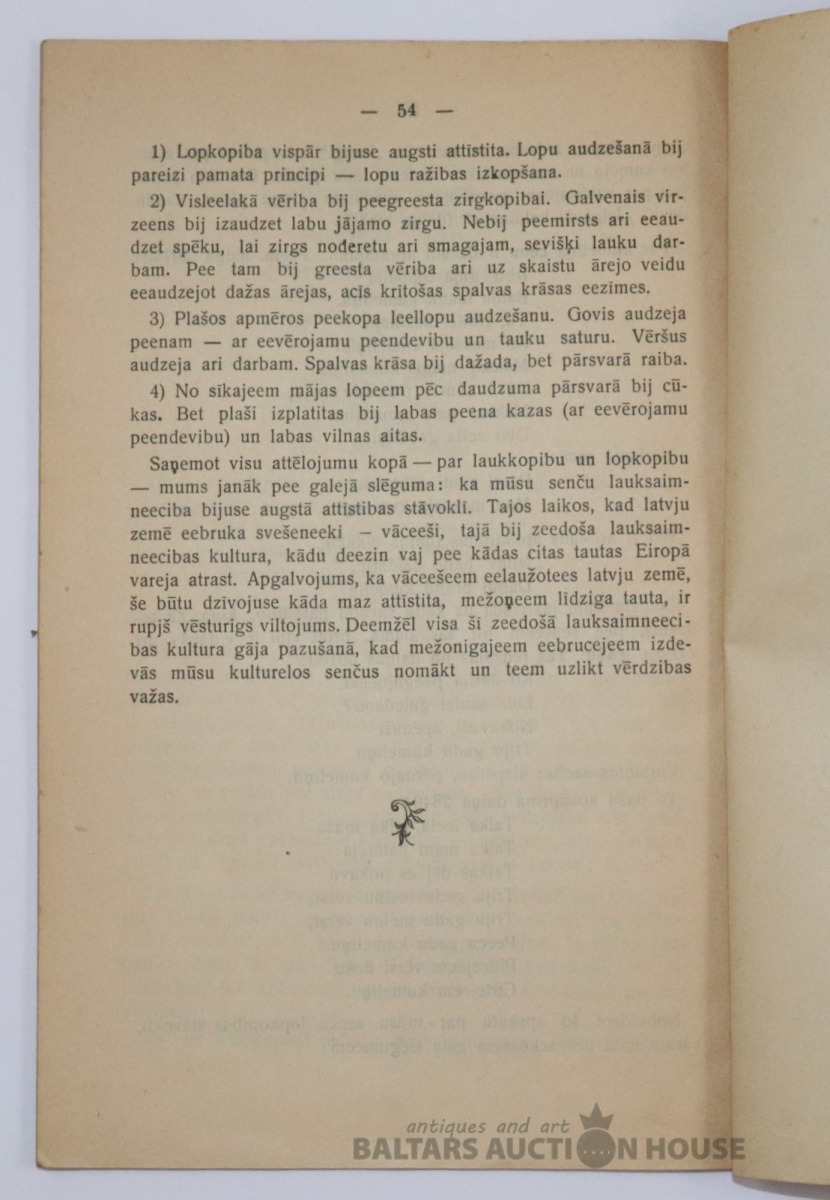 Jānis Mazvērsītis MŪSU SENČU LAUKSAIMNIECĪBA (PĒC LATVJU DAINĀM). Jelgavā, 1924. g.
