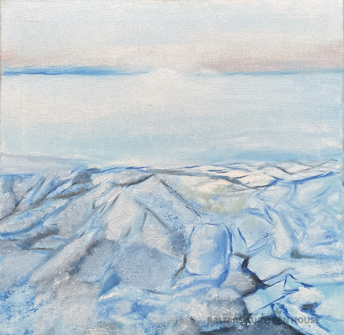 Nezināms autors, Ledus kalni jūrmalā, a.e., 39,5x39,5 cm