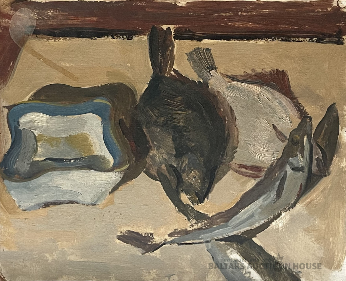 Stepans Skakuns 1921.1985. "Klusā daba ar butēm", k.e., 39x48 cm.