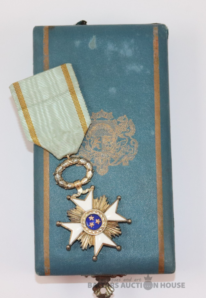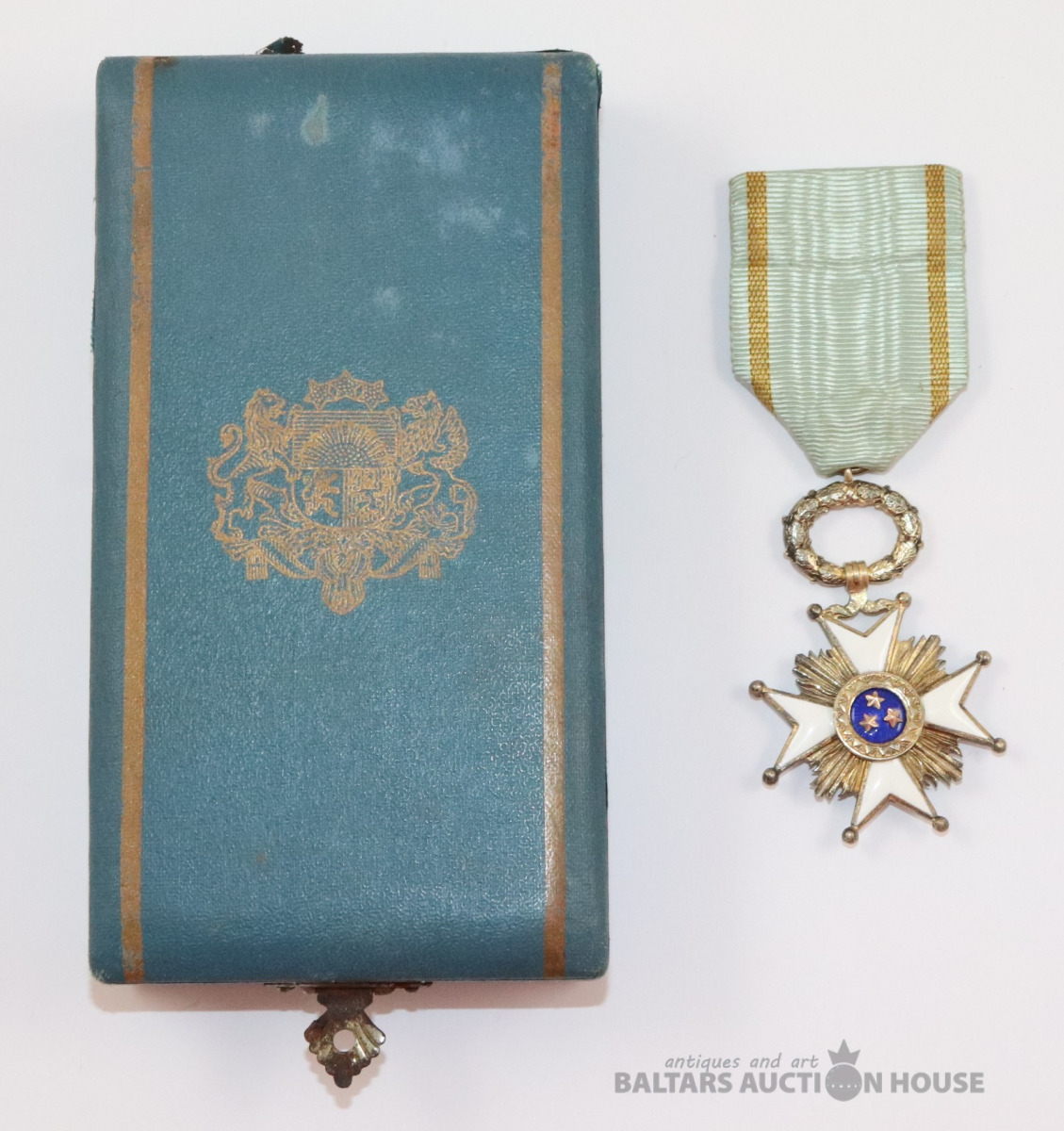 Triju Zvaigžņu ordenis ar kasti. V šķira. Sudrabs 875. Svars visam 23,86 g.
