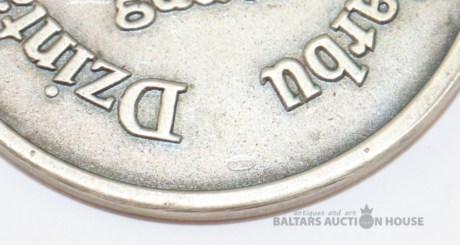 Medaļa DZINTARS PATEICAS PAR LABU DARBU 25 GADOS. Sudrabs 925. Svars 25,62 g. 9,9x3,6 cm