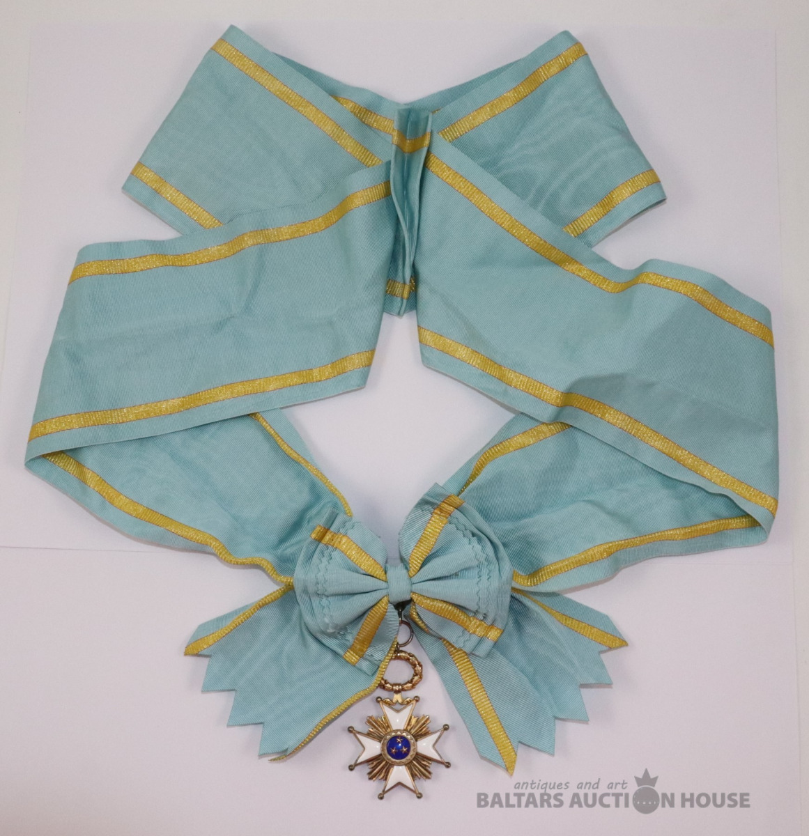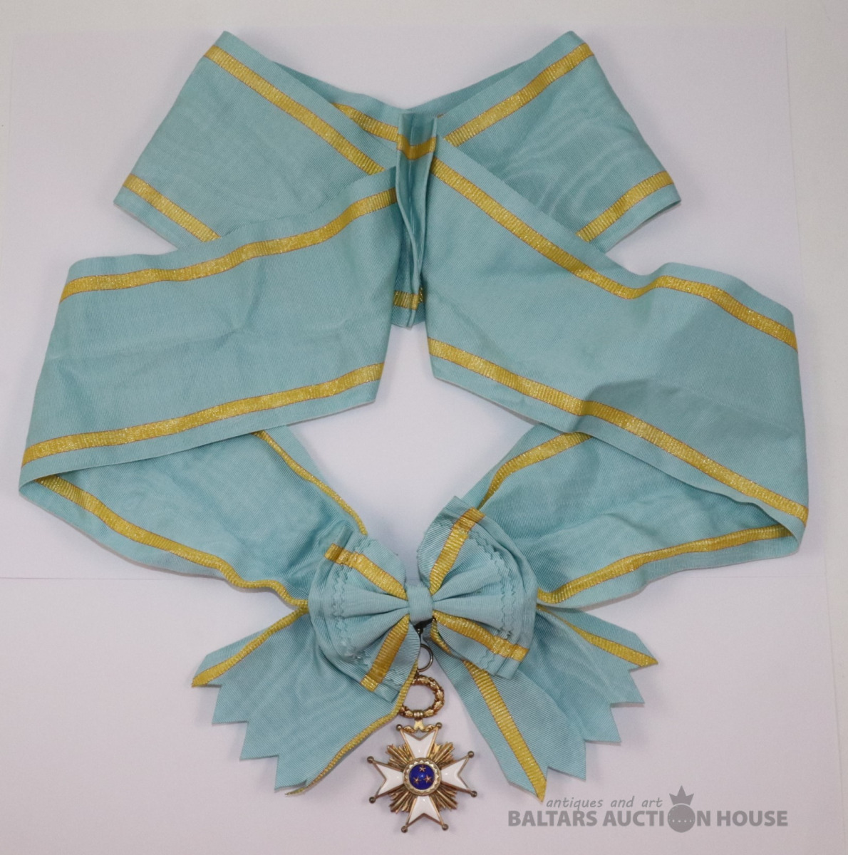 Ulmaņlaika Triju Zvaigžņu ordenis. I šķira. Sudrabs 875. Svars 49,09 g. Lenta jauna.