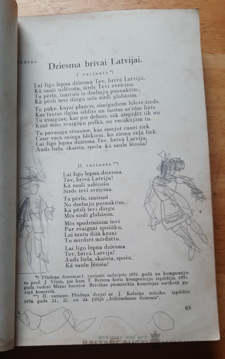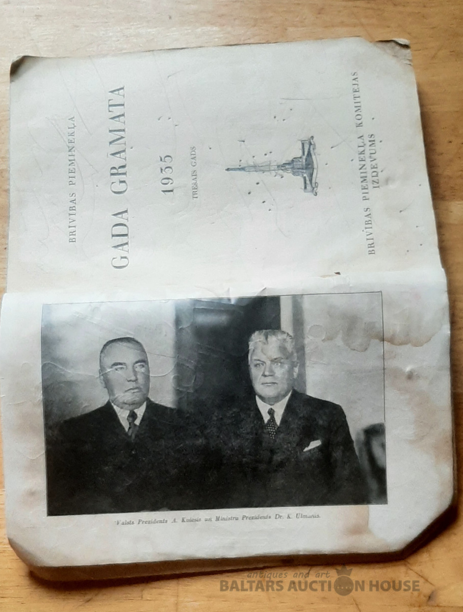 Gada grāmata 1935.gads. Grāmatai nav aizmugurējā vāka, tajā ir daudz ķēpātu lappušu un zīmuļu zīmējumu.