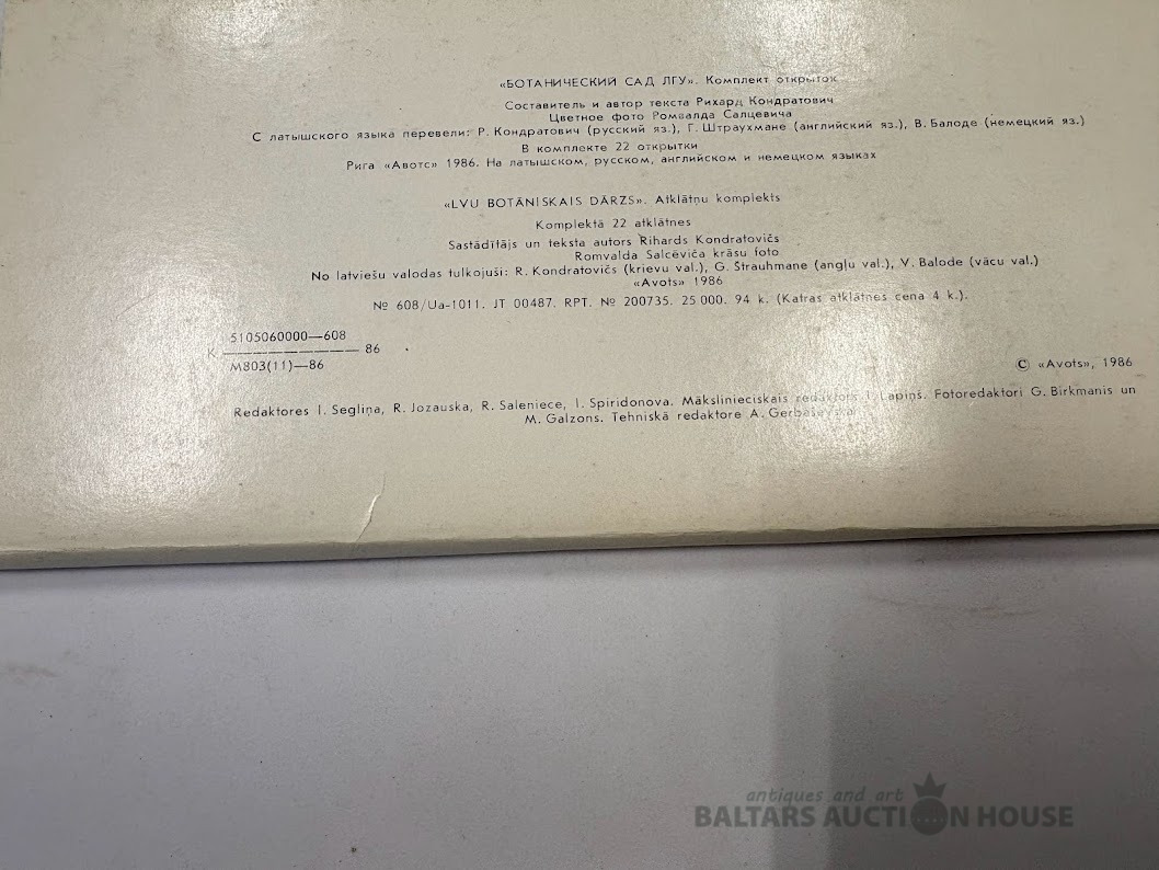 Atklātņu komplekts(22) LVU botāniskais dārzs, izd."Avots",1986.g.
