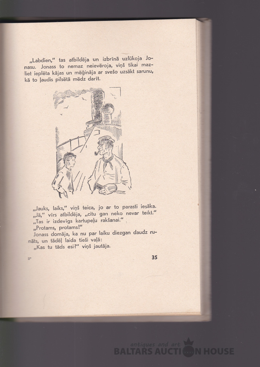 Gabriels Skots –Jonass gādā par trim, 1939. g. Bērnu grāmata. Vāku un daudzās ilustrācijas zīm. Gunars Hermanovskis. Cietais sēj. Latv. vidusskolu skolotāju kooperatīva izd.