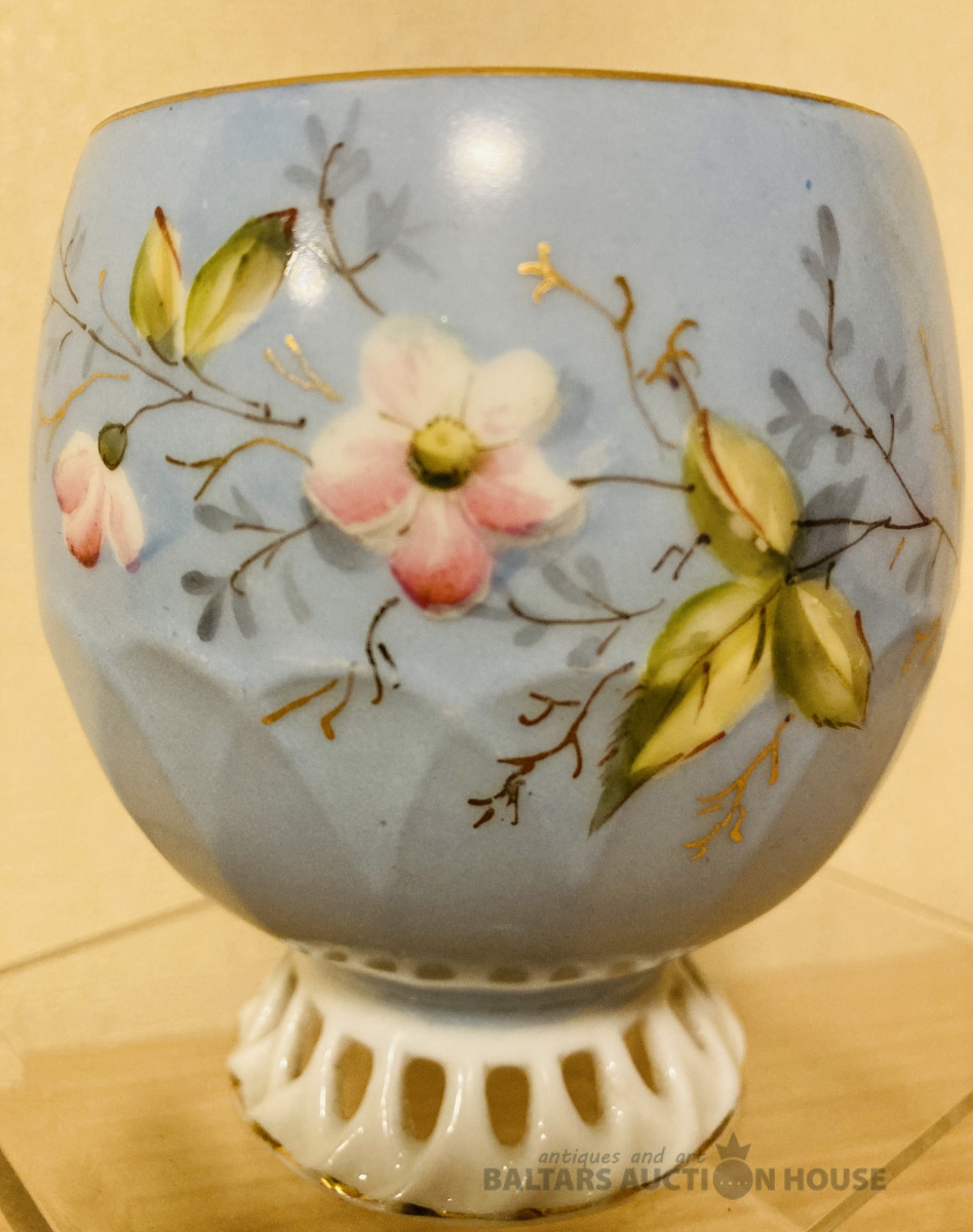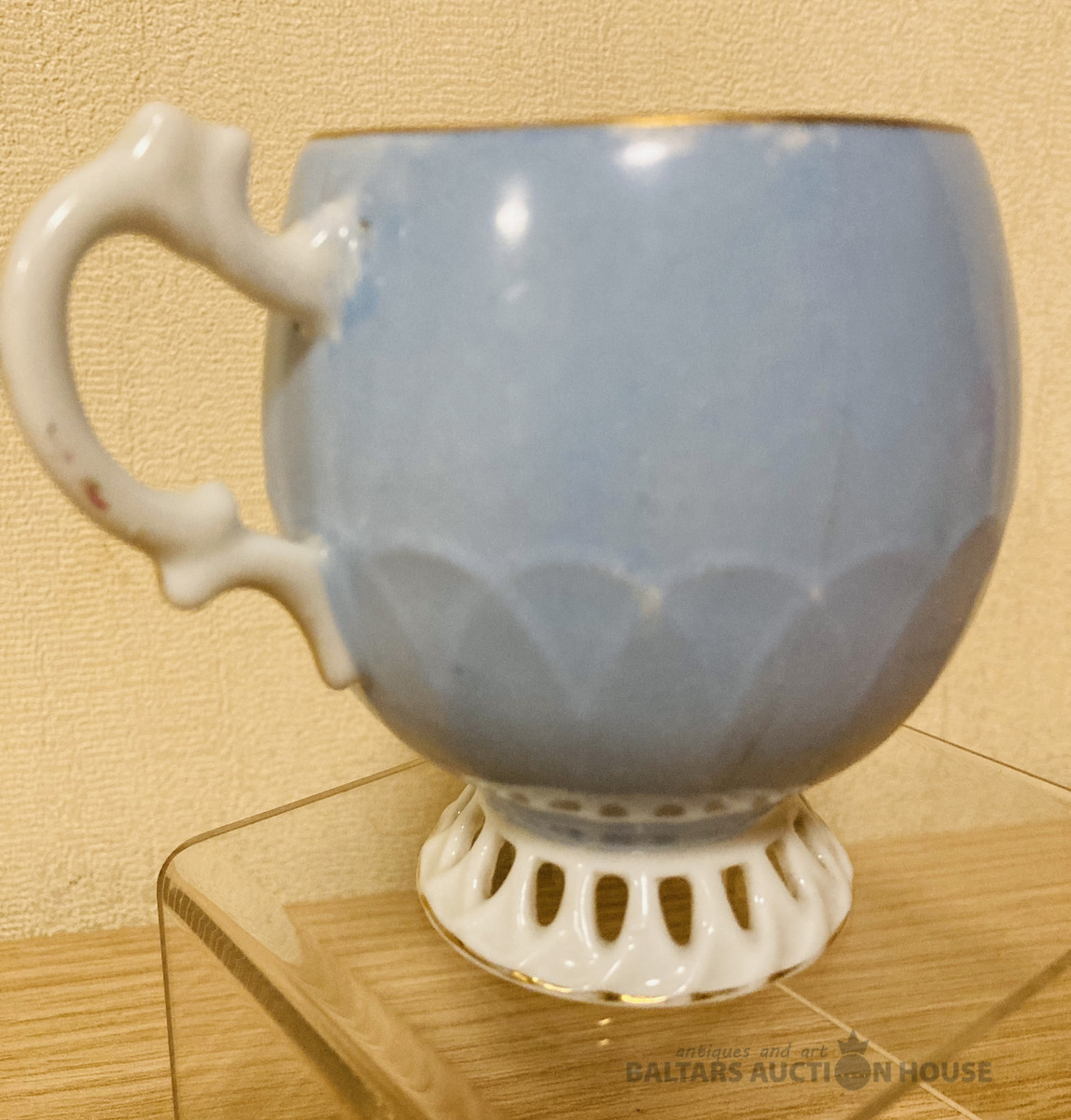Cara laika Kuzņecova tase ar defektu, ir smalka matveida plaisiņa vienā sānā (sk.foto), rokas apgleznojums, H-8.5 cm.