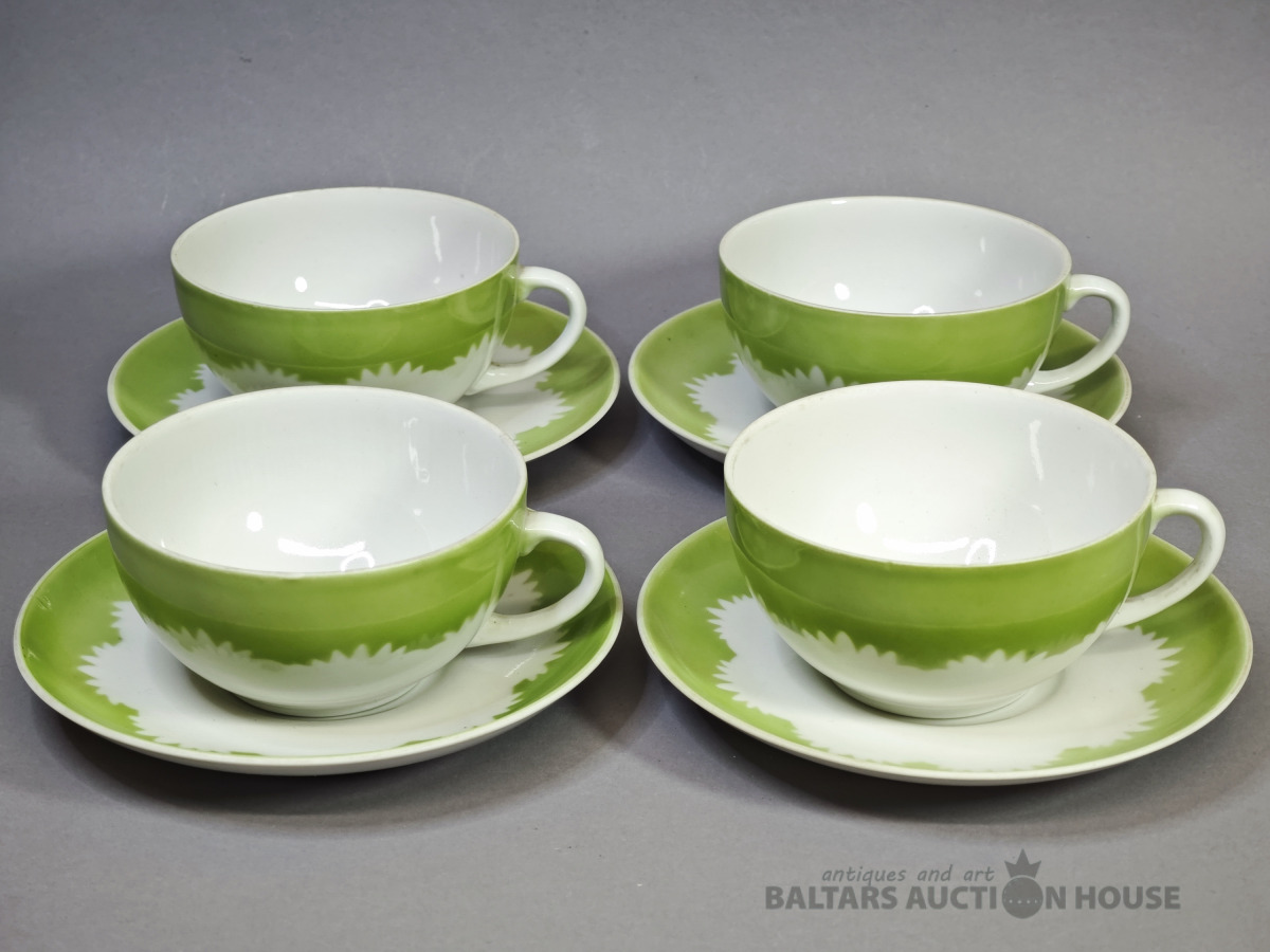 4 Tases ar apakštasiem no MARIJKA tējas servīze, Rīga PFF, bez defektiem
