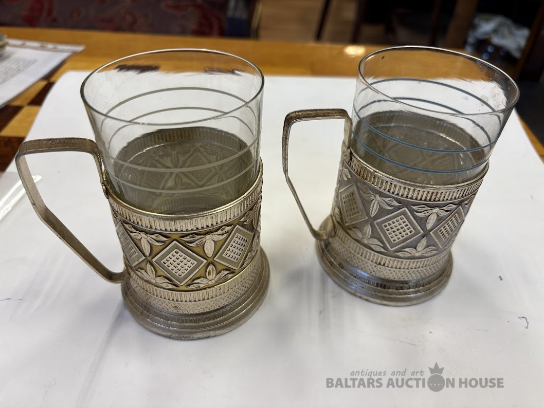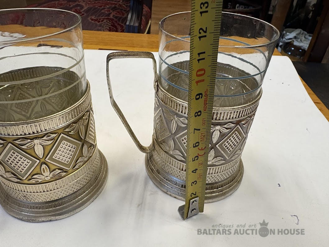 2 oriģinālas glāzes vieglmetāla glāžu turētājos.H=11,5 cm
