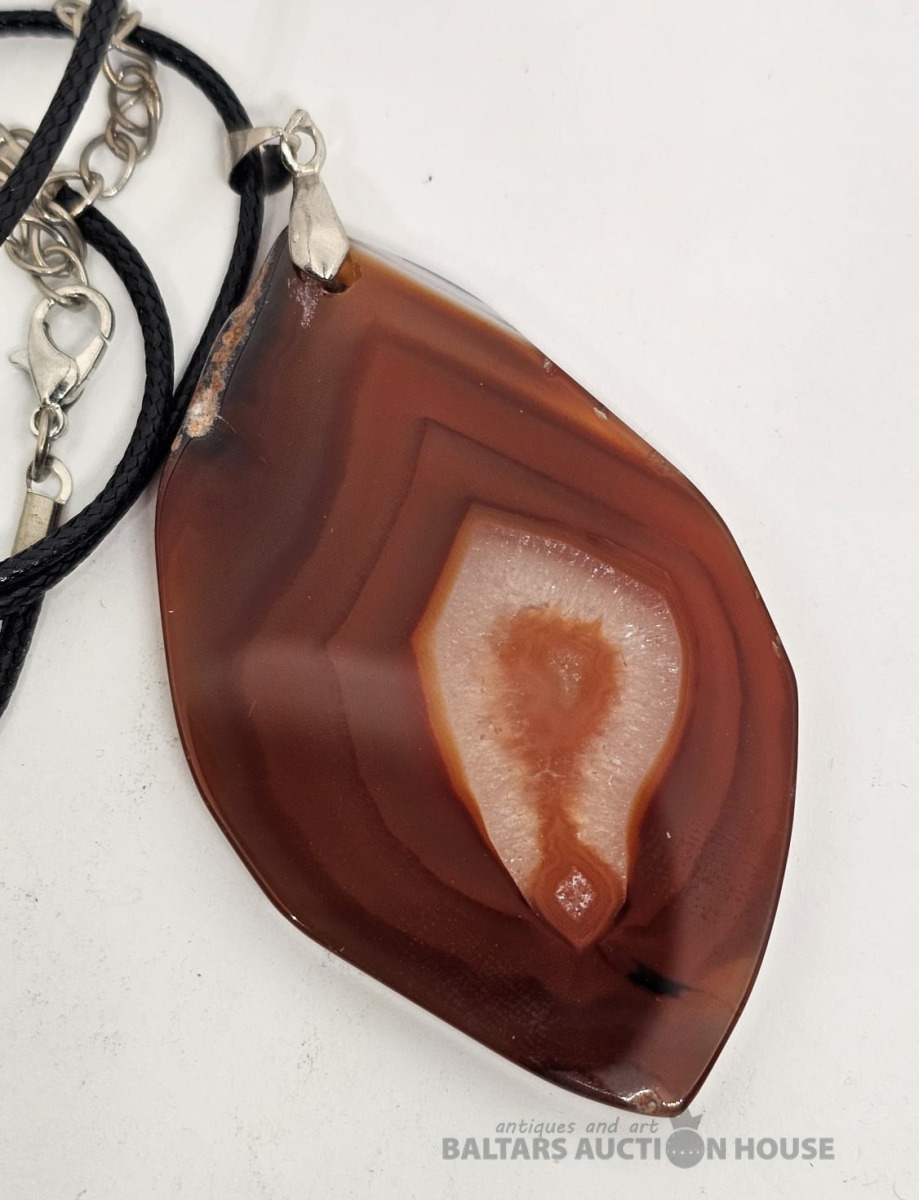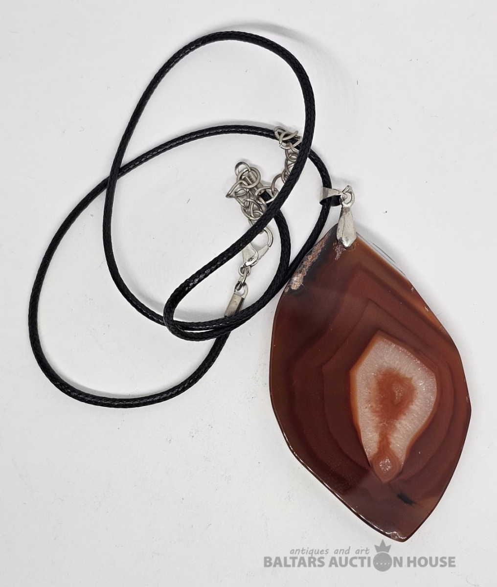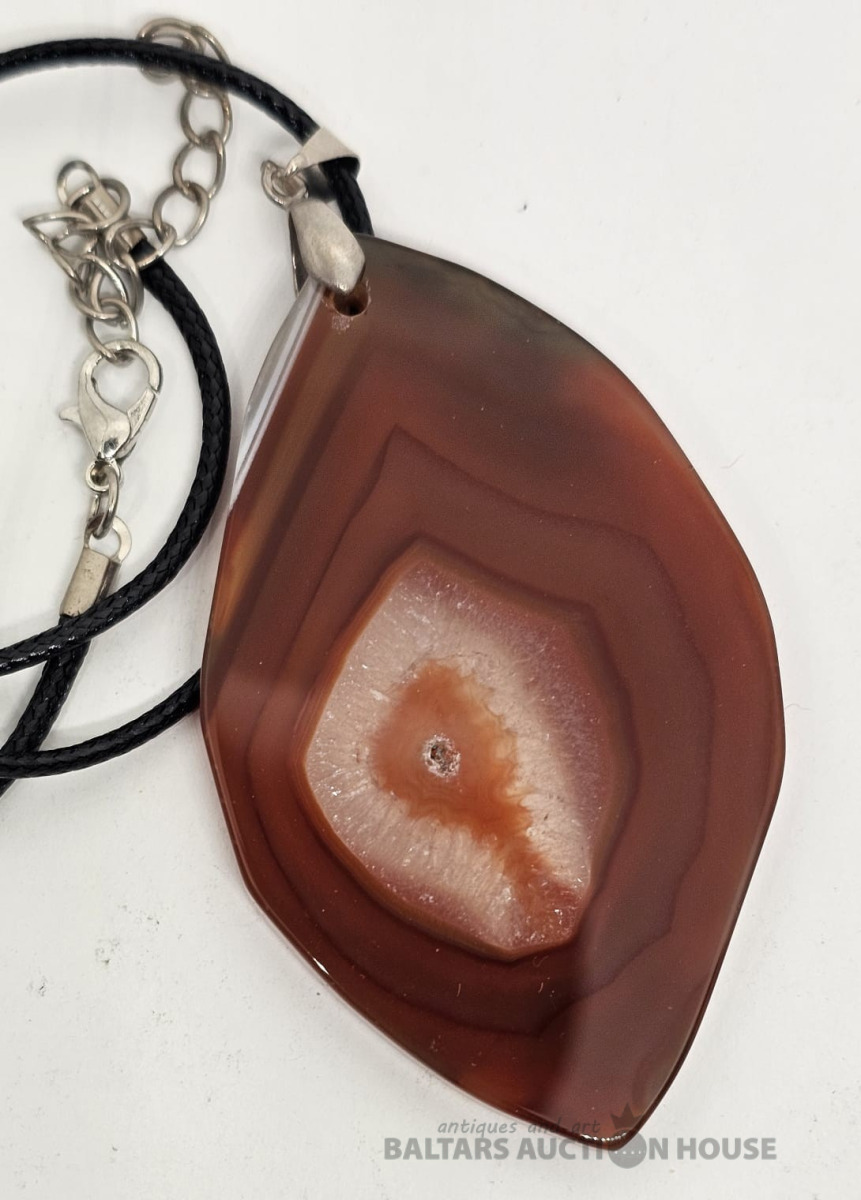 Jauns, ļoti skaists. Nelietots. Liels kulons no dabīga Rozā Ahāta, auklas garums - 48CM