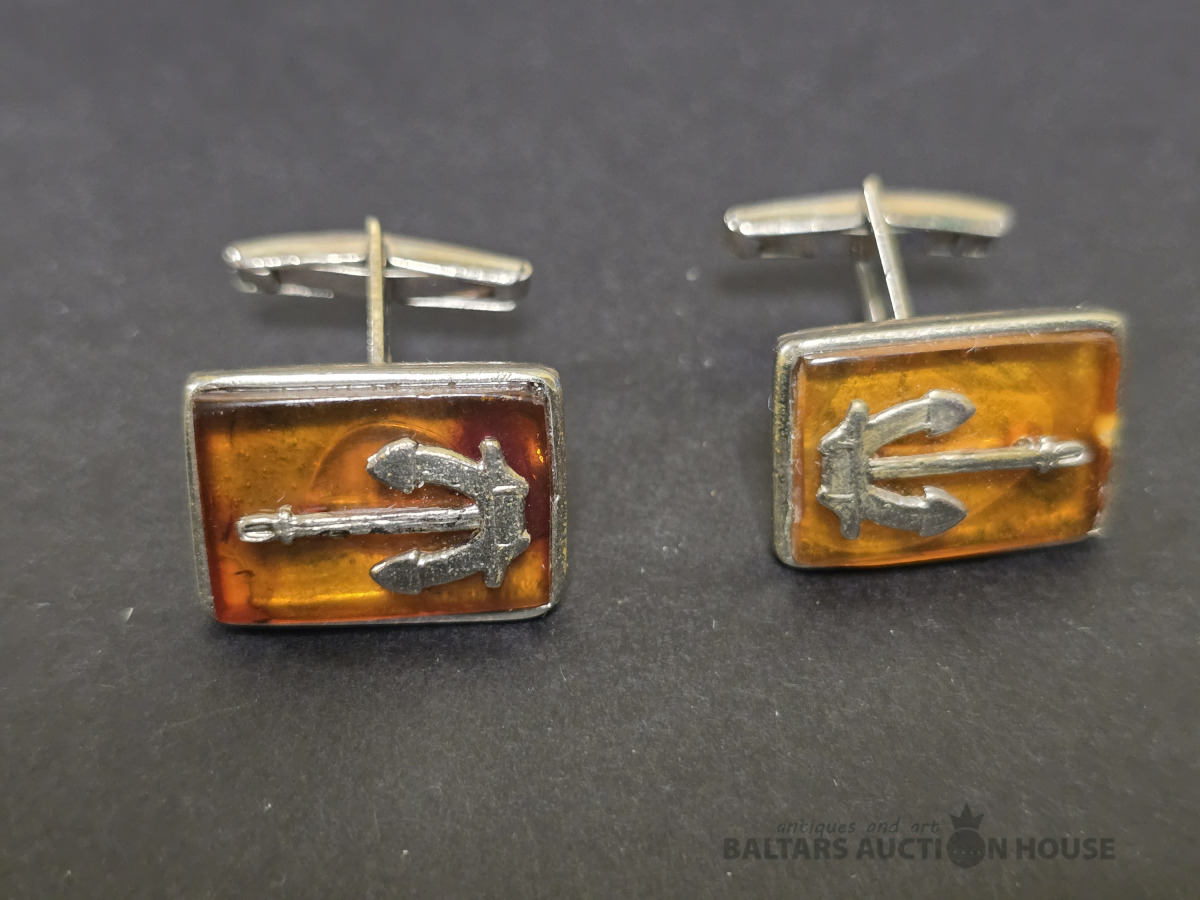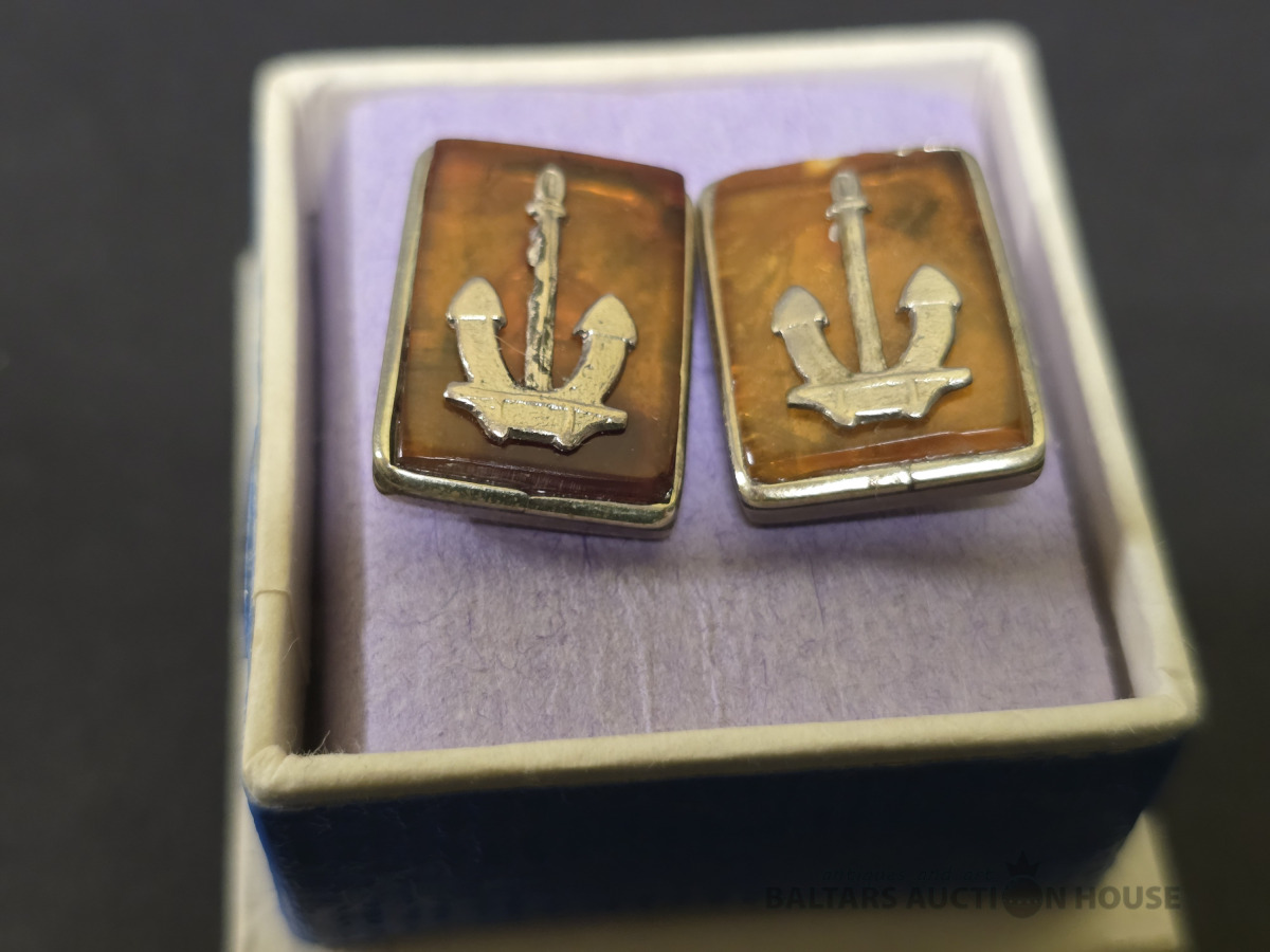 Dzintara aproču pogas Jūrnieku .Svars 10.37 gr.