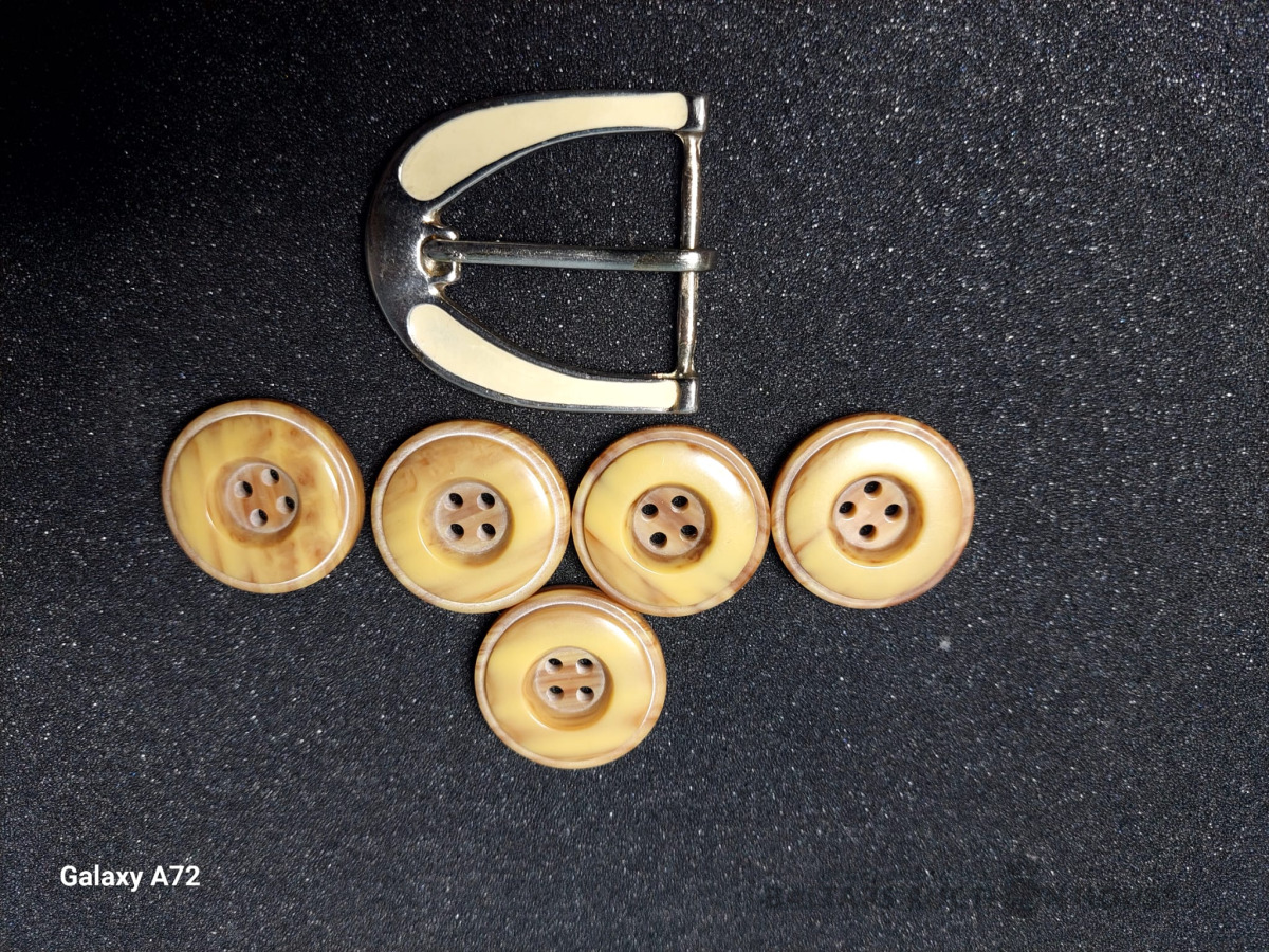 Komplekts pogas un jostas sprādze. , Pogas d- 3cm, sprādzes izm.- 4,5x4cm.