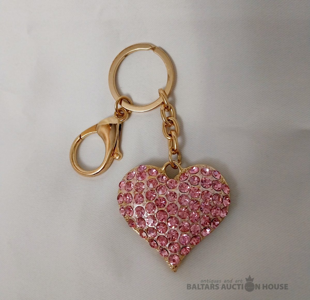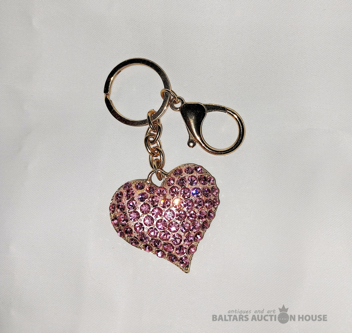Sirds piekarinš ar rozā kristāļiem. Sirds izm.: H 4 × 4.5 cm