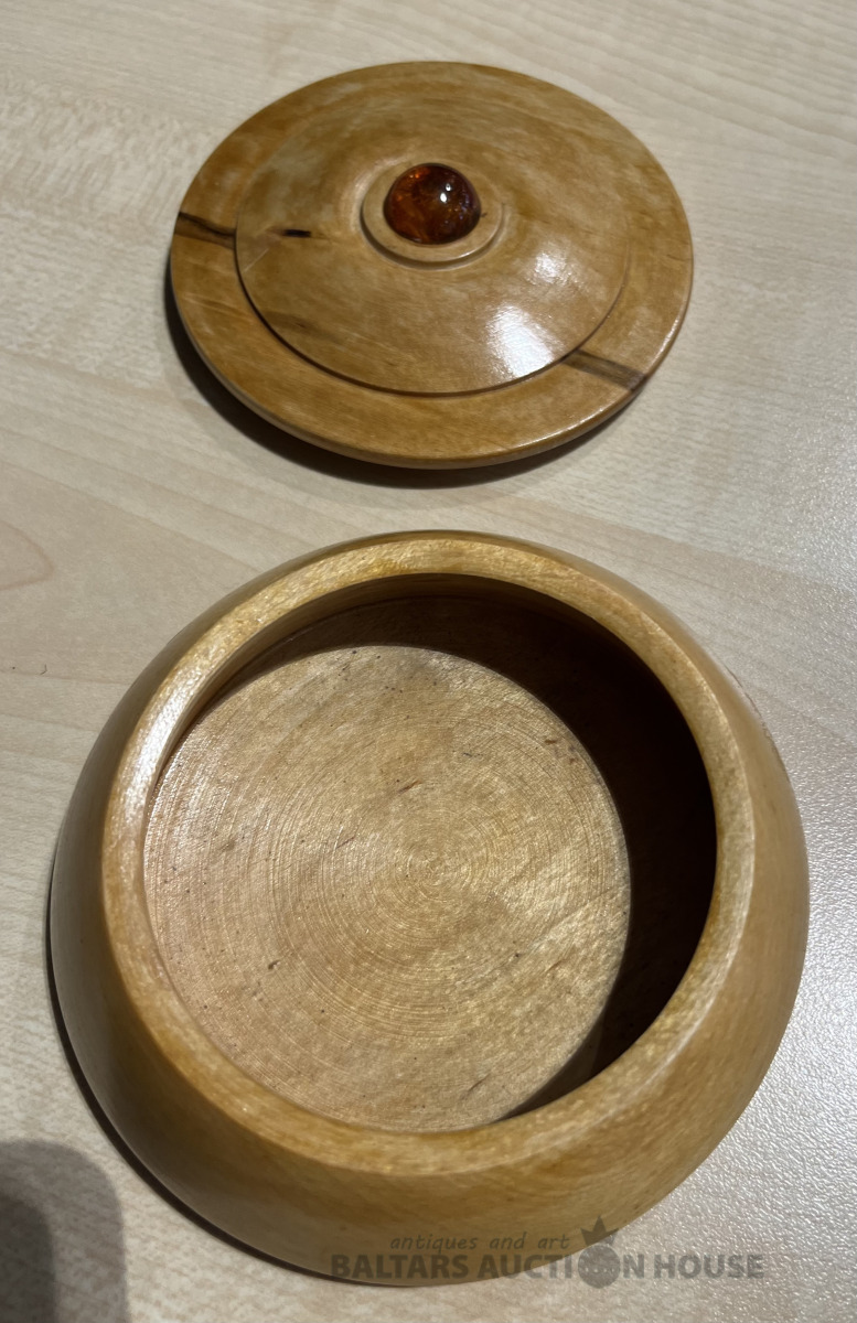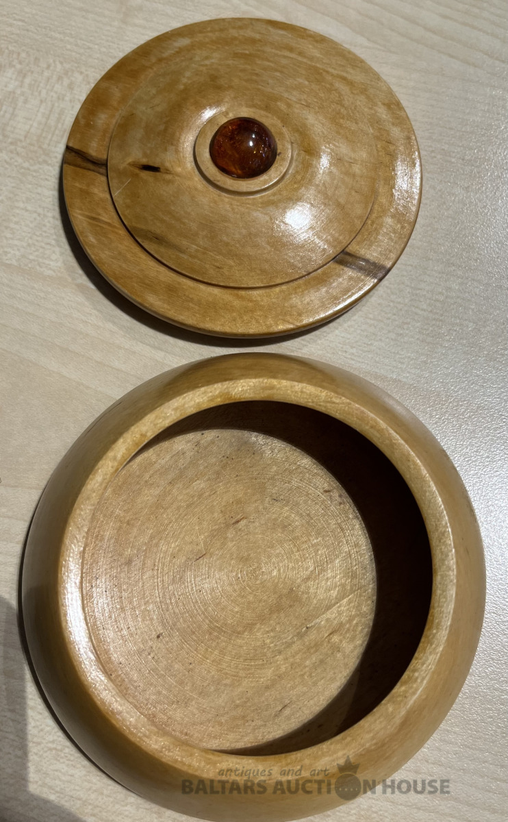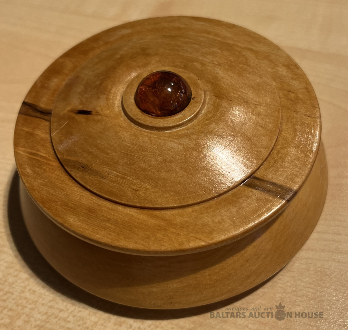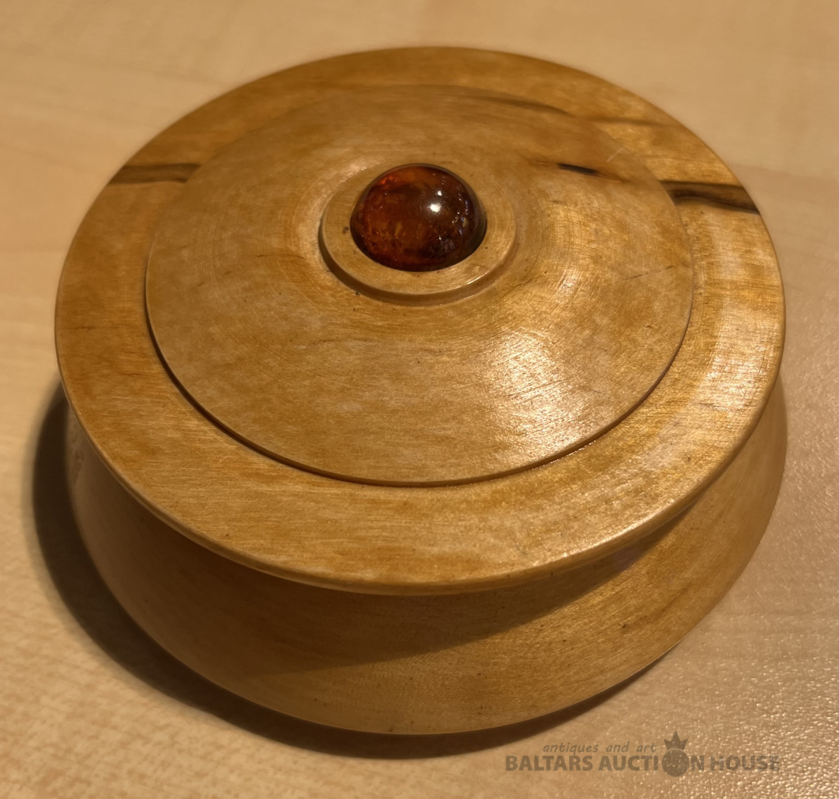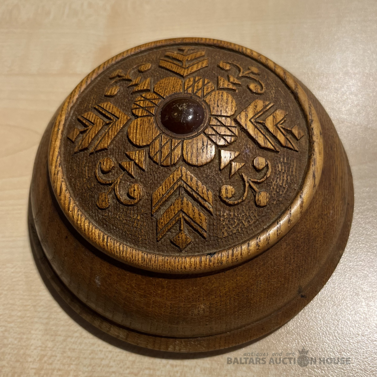 Koka lādīte ar dzintaru uz vāka 10 cm