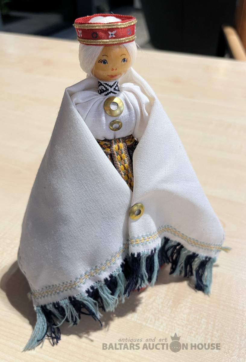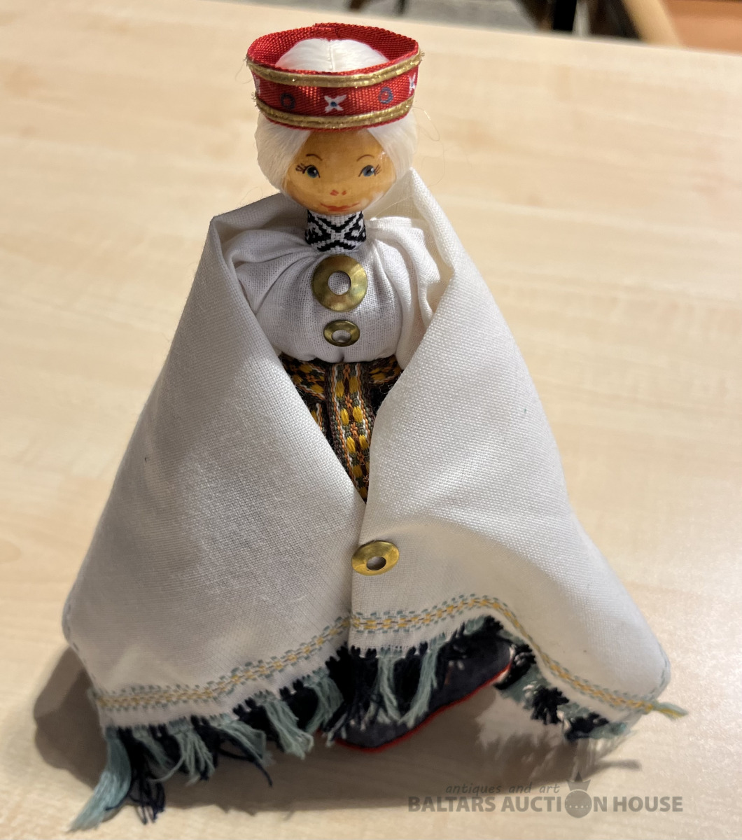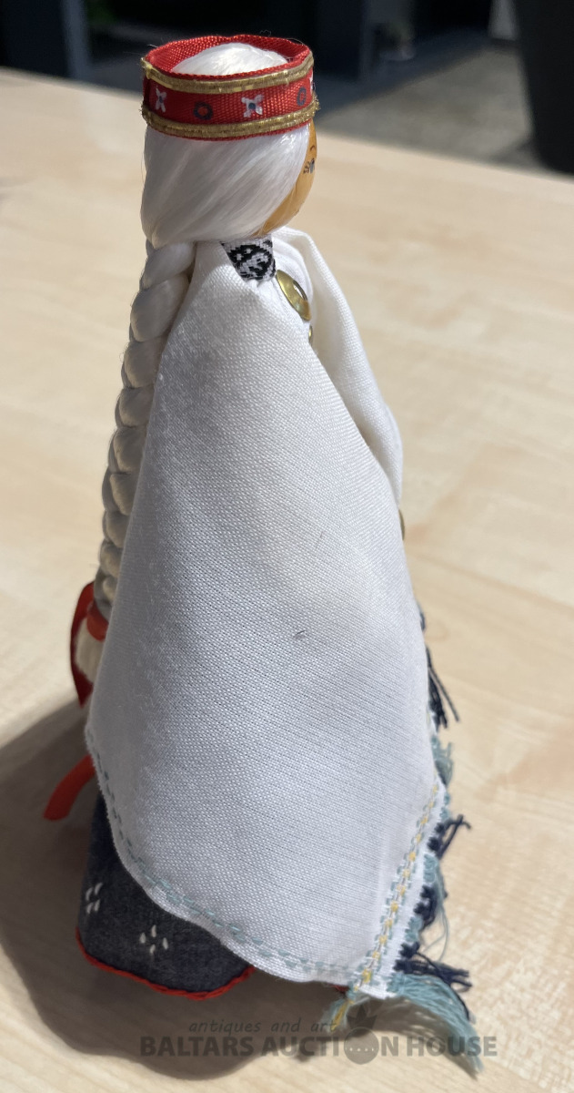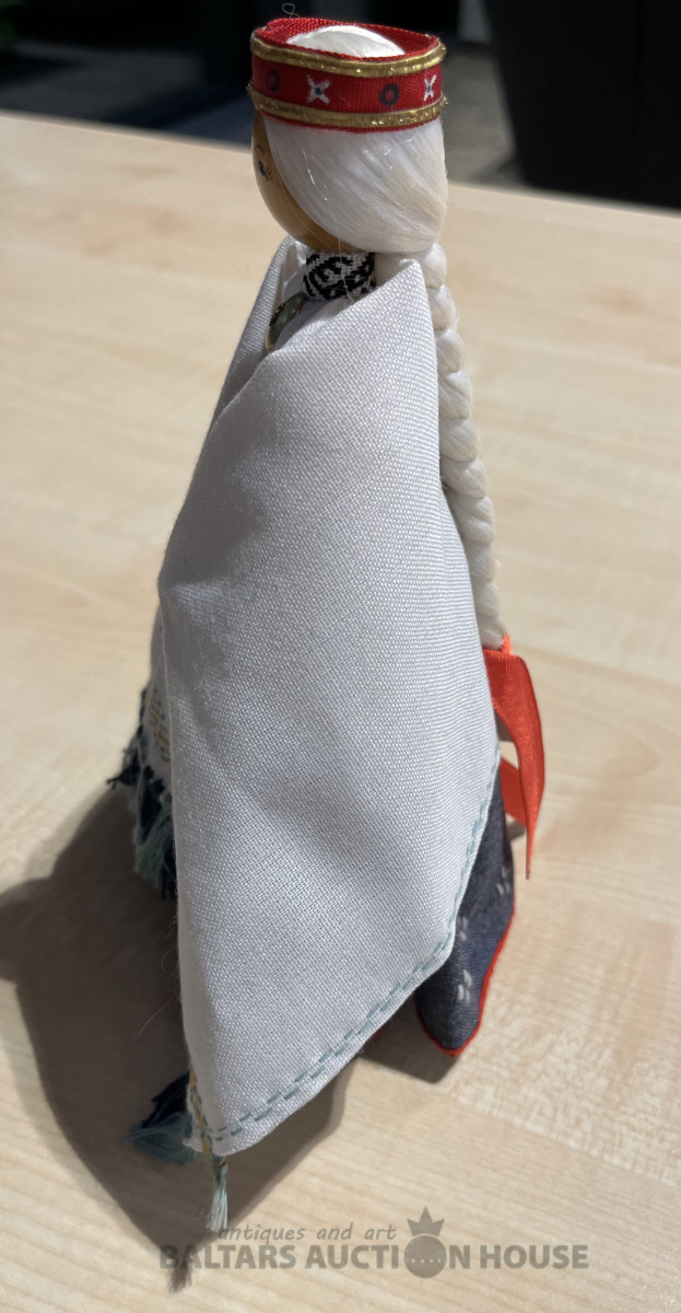 Koka figūra ar audekla līna drēbēm. Labā stāvoklī kā jauna 22 cm Tautu meita