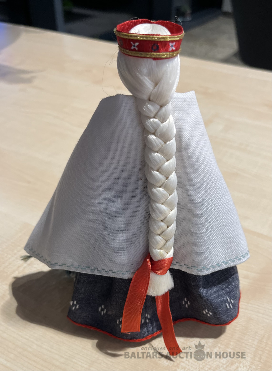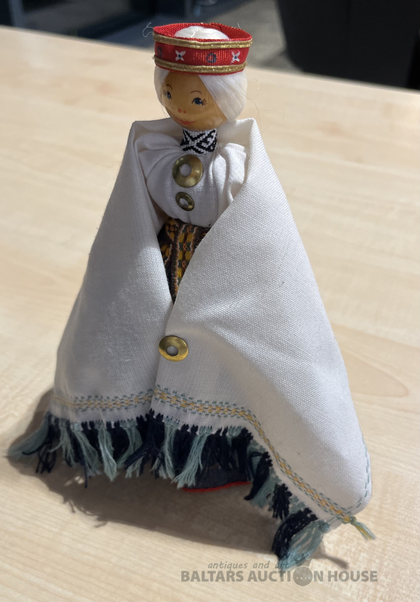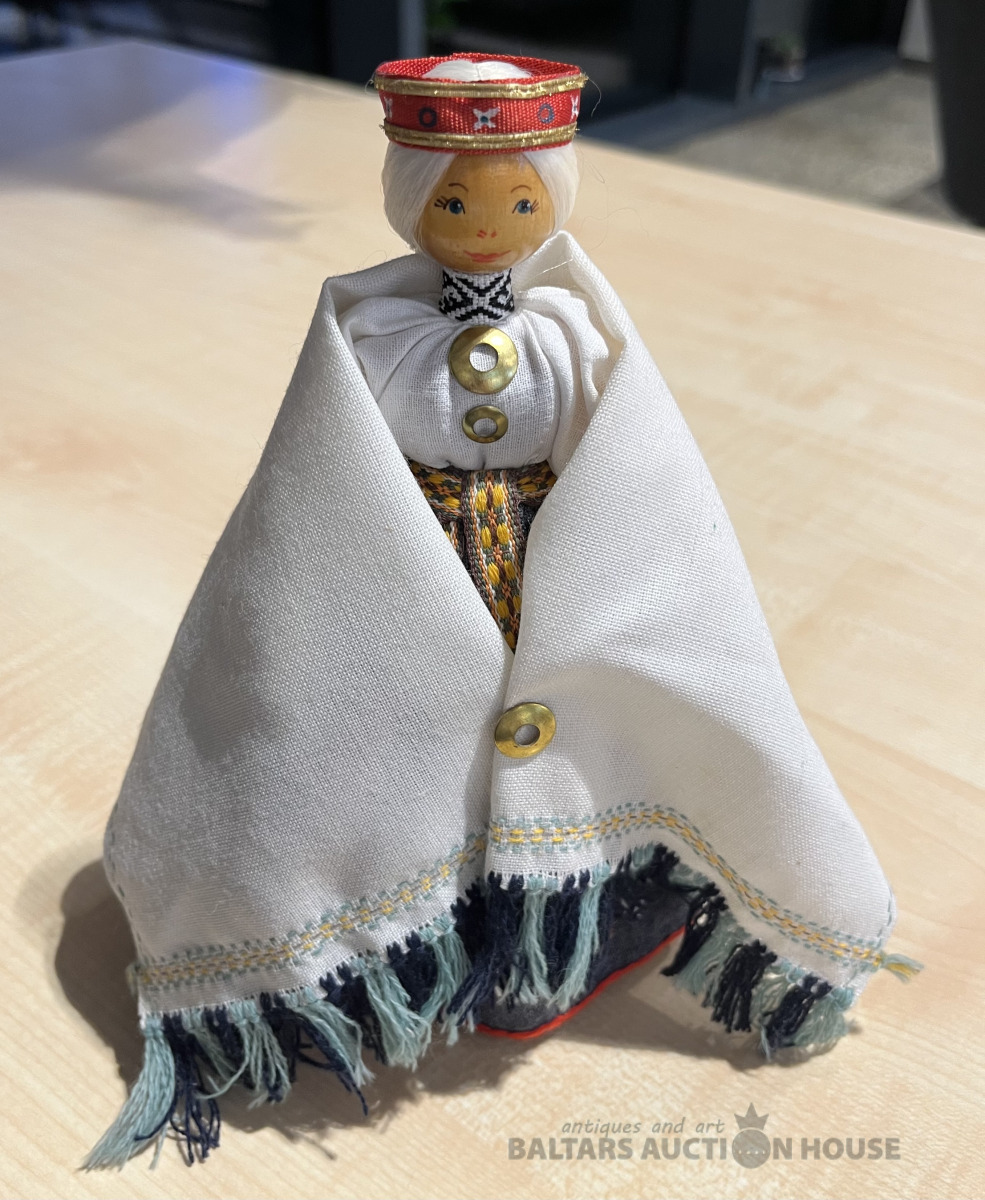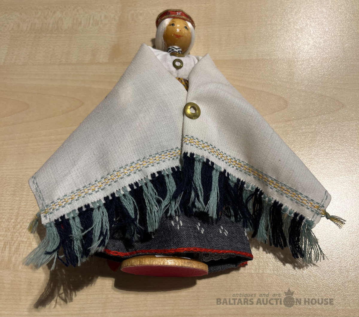 Koka figūra ar audekla līna drēbēm. Labā stāvoklī kā jauna 22 cm Tautu meita