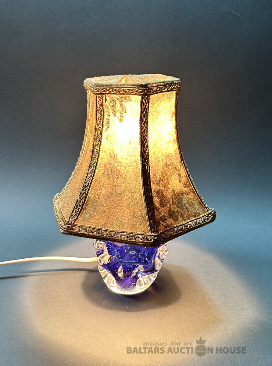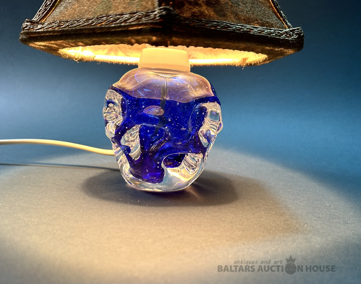 Gaismas ķermenis, roku darbs, pamatne zils dizaina stikls, kupols audekls, 1950-tie gadi, lietots.
