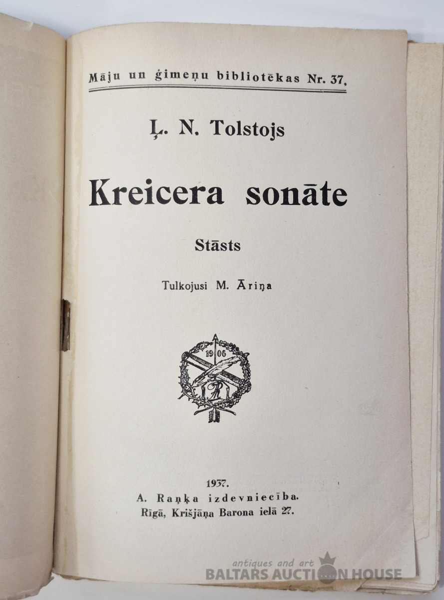 Ļ.N. Tolstojs "Kreicera sonāte". 1937g Rīgā. Māksl. Apsītis.
