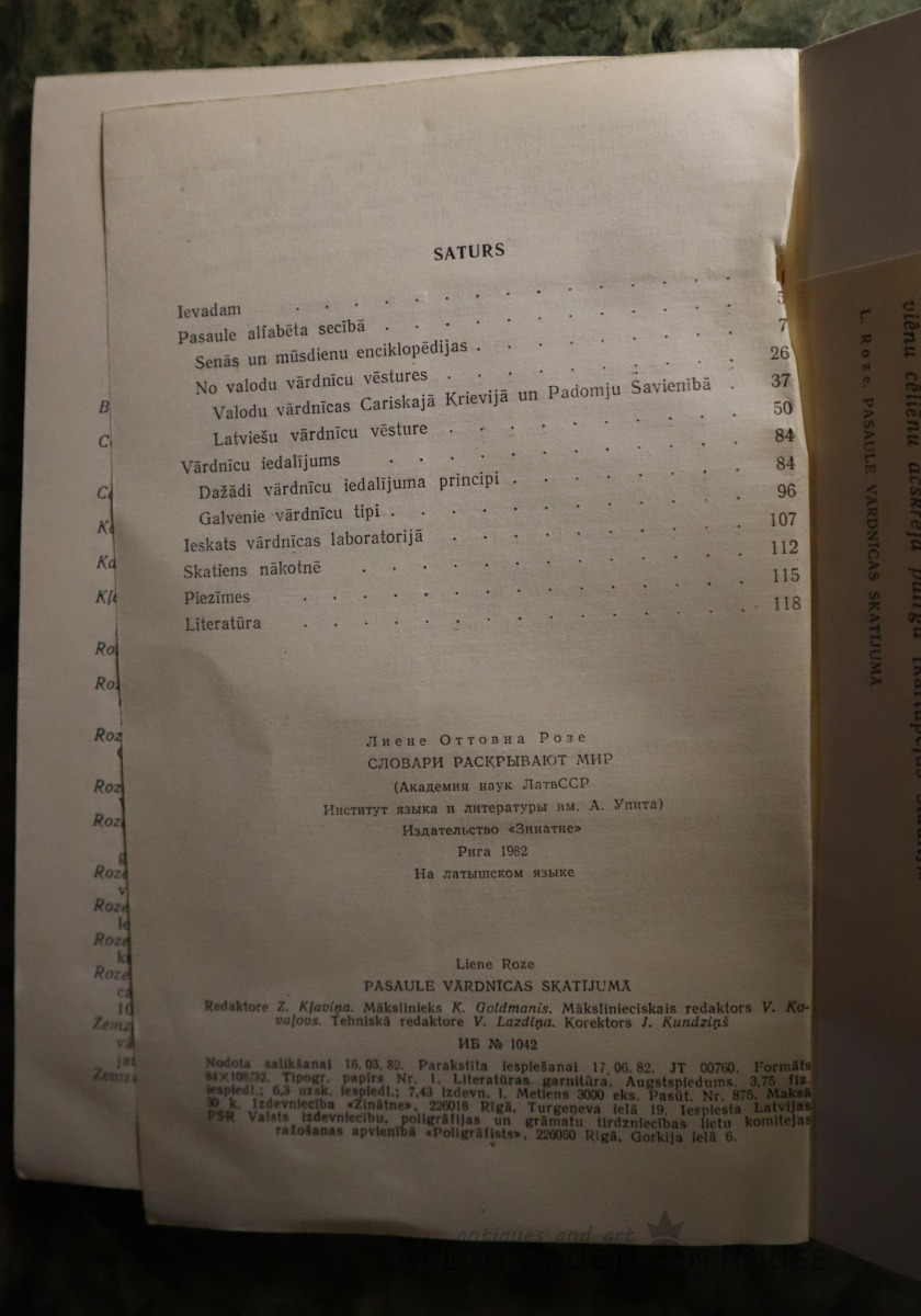 L. Roze ''Pasaule vārdnīcas skatījumā'', 1982. gads