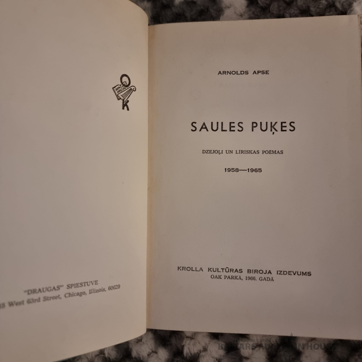 Arnolds Apse ''Saules puķes'', dzejoļi un liriskas poēmas 1958-1965, 1966. gads