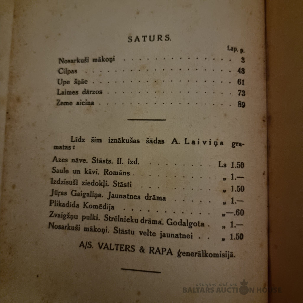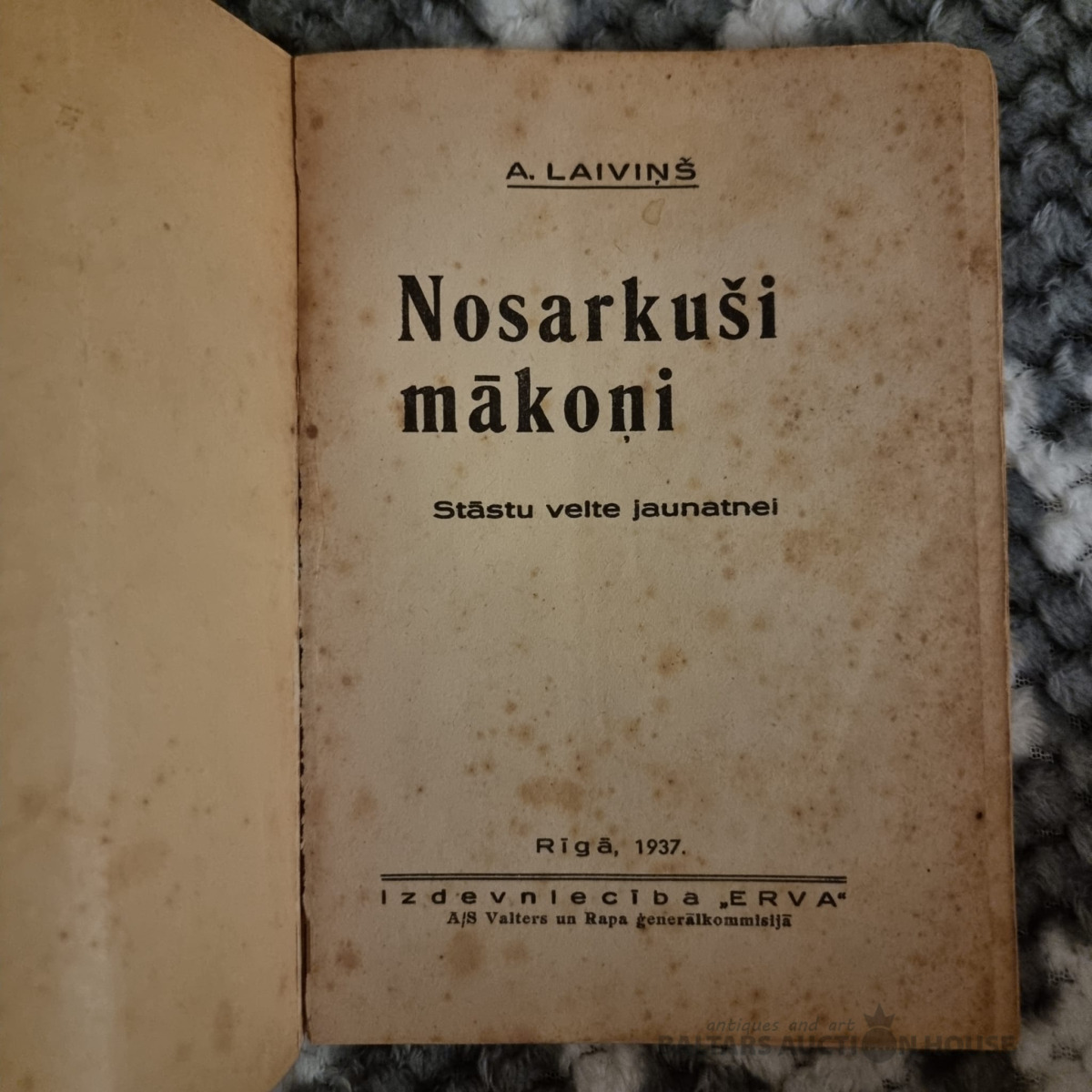 A. Laiviņš ''Nosarkkuši mākoņi'', stāstu velte jaunatnei, 1937. gads
