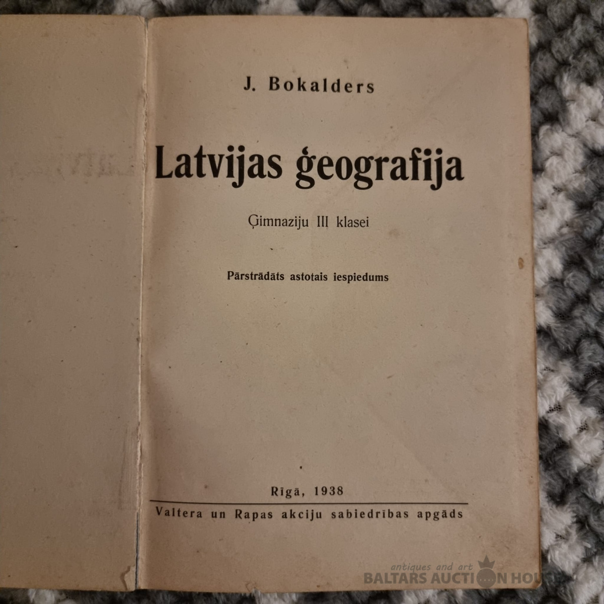 J. Bokalders ''Latvijas ģeogrāfija'ģimnāziju III klasei'', 1938. gads