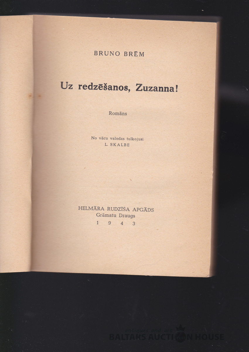 Bruno Brēms / Uz redzēšanos, Zuzanna, 1943. g. / Vāku zīm. Marģeris Vītoliņš. / Labā stāvoklī. Tulkojusi Lizeta Skalbe. Helmāra Rudzīša apgāds