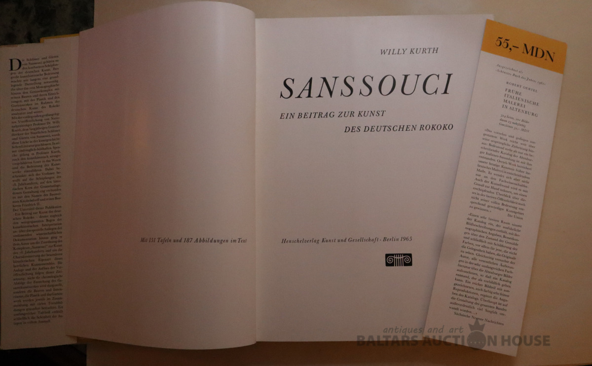 Willy Kurth ''Saunssouci', ein Beitrag zun Kunst des Deutschen Rokoko', 1965. gads