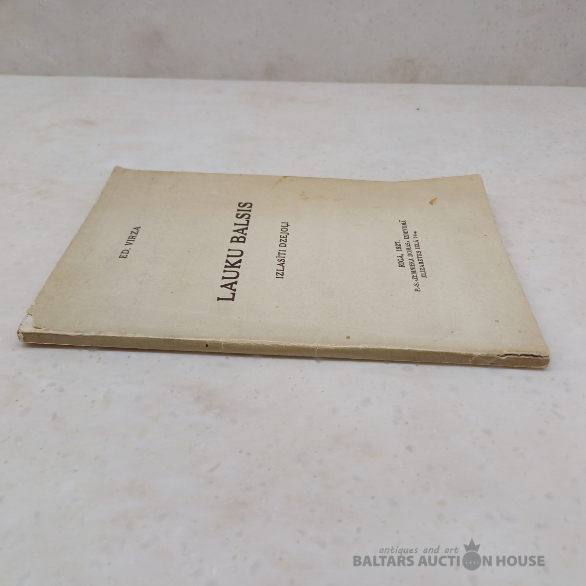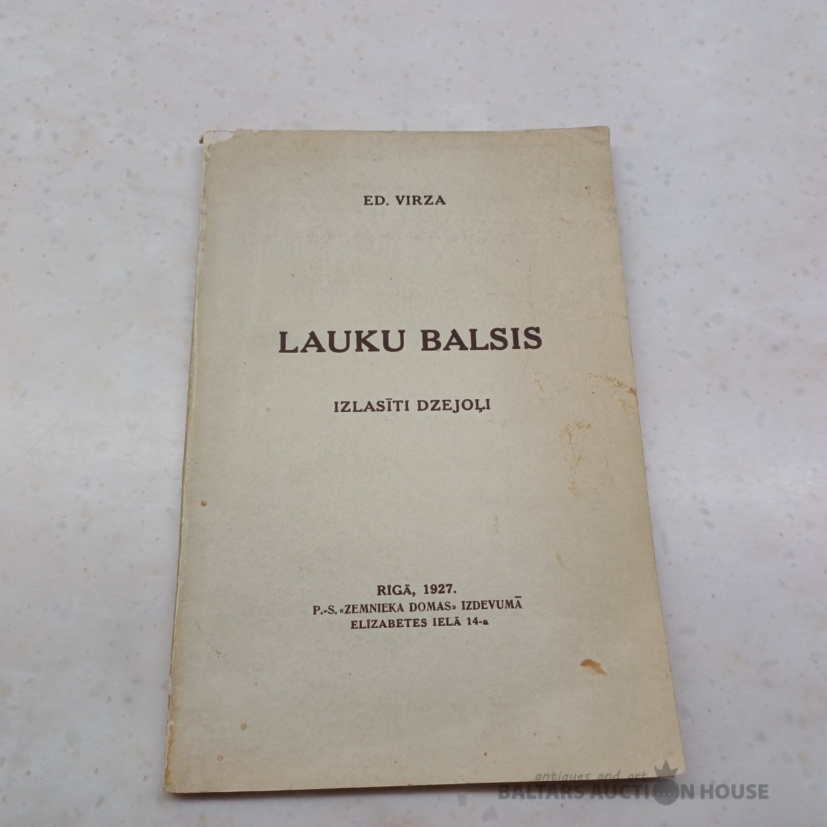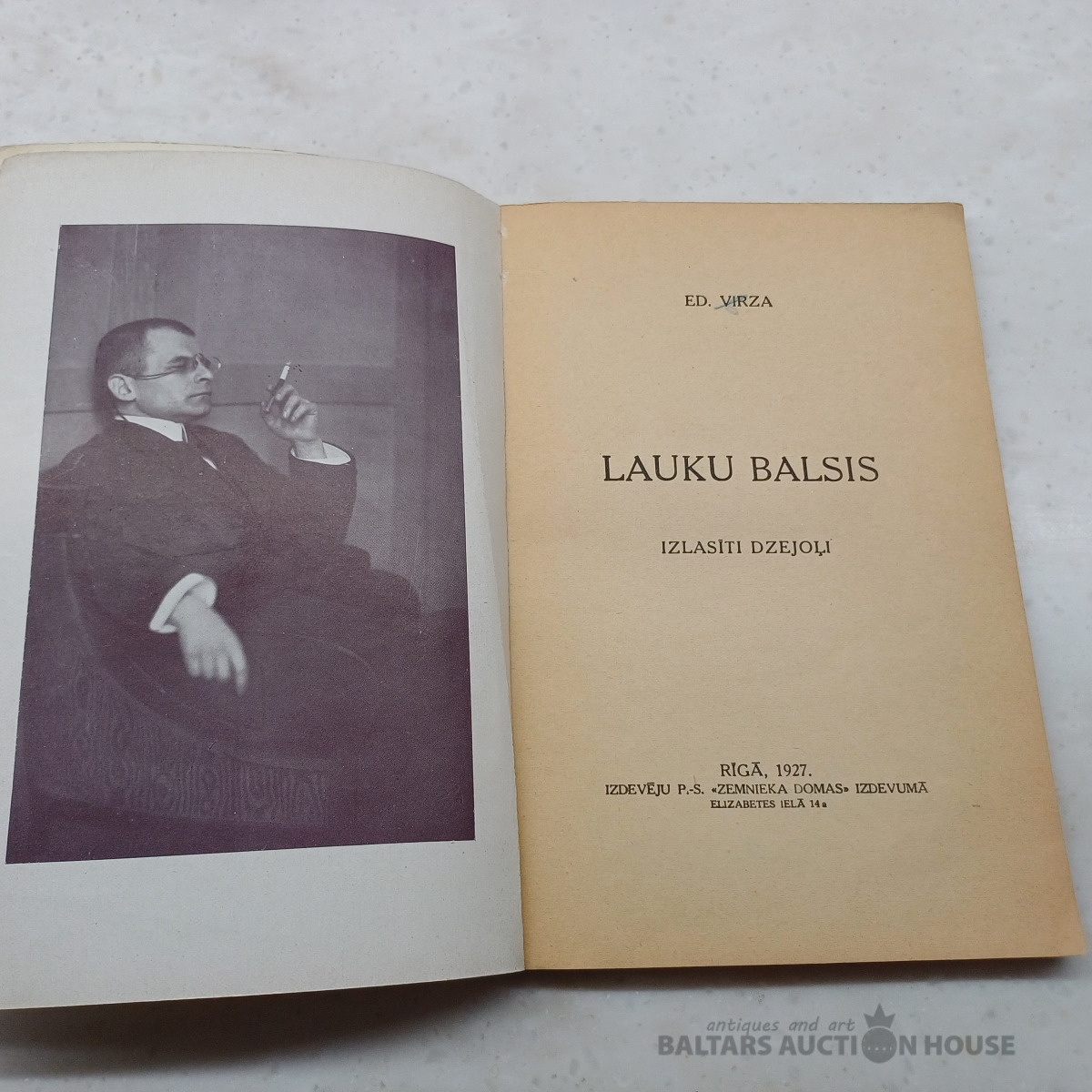 Ed. Virza – LAUKU BALSIS, 1927. g. apgāds ZEMNIEKA DOMAS. Ar Virzas foto prettitulā.