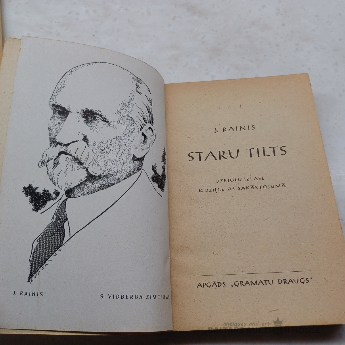 Rainis STARU TILTS, 1946. g. Grāmatu draugs izdevums. VIDBERGA ZĪMĒTS RAIŅA PORTETS prettitulā. Grāmata labā stāvoklī