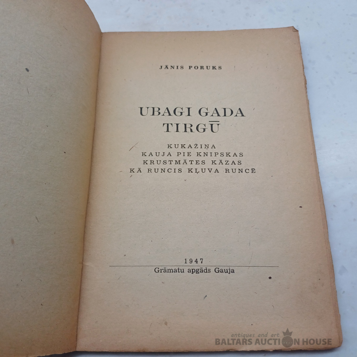 Jānis Poruks UBAGI GADA TIRGŪ, 1947. g. Apgāds Gauja. Vākam E. Rutka kokgriezums.
