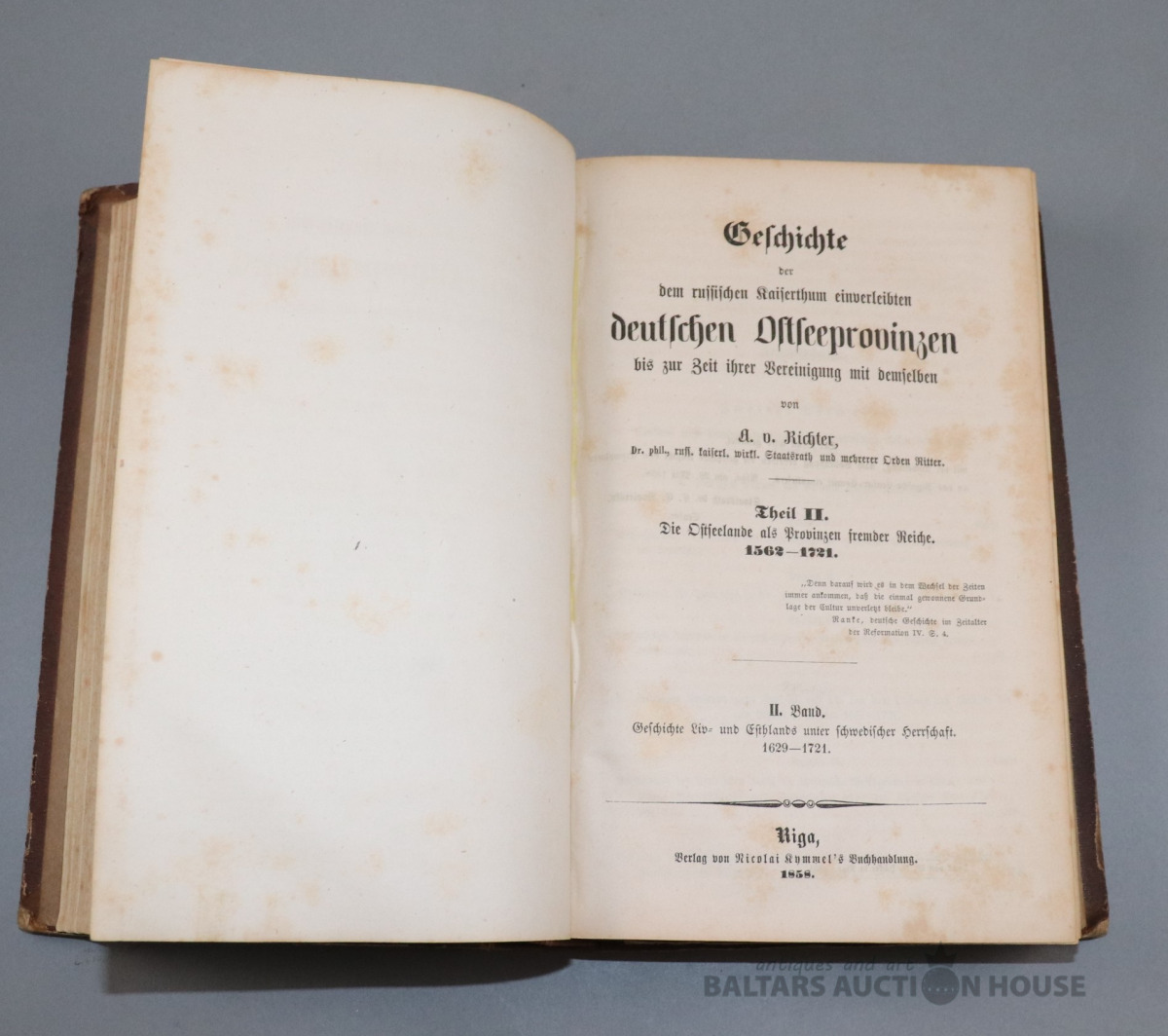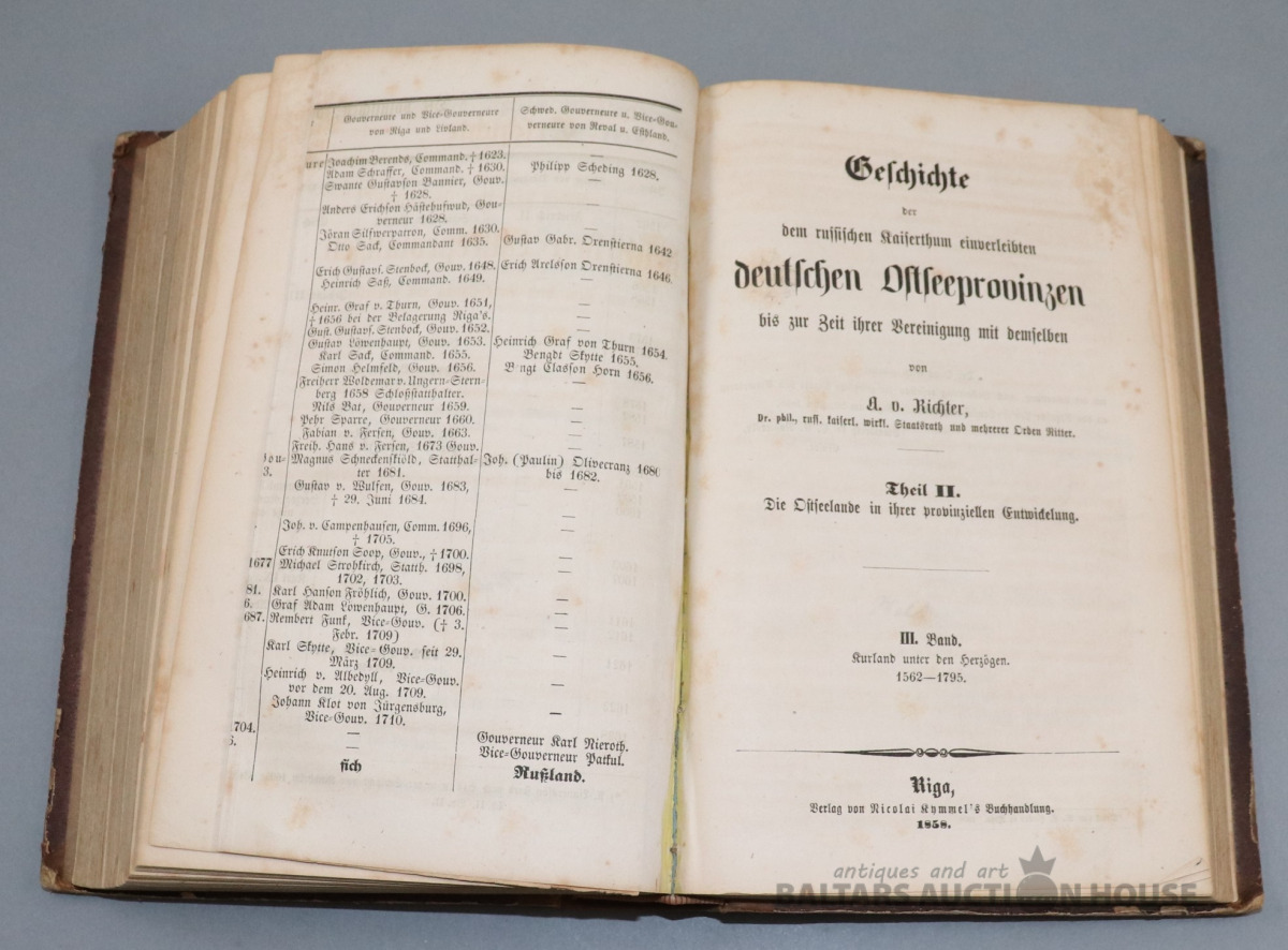 Geschichte der dem russischen Kaiserthum einverleibten deutschen Ostseeprovinzen. A. von Richter. Riga, 1857., 1858.