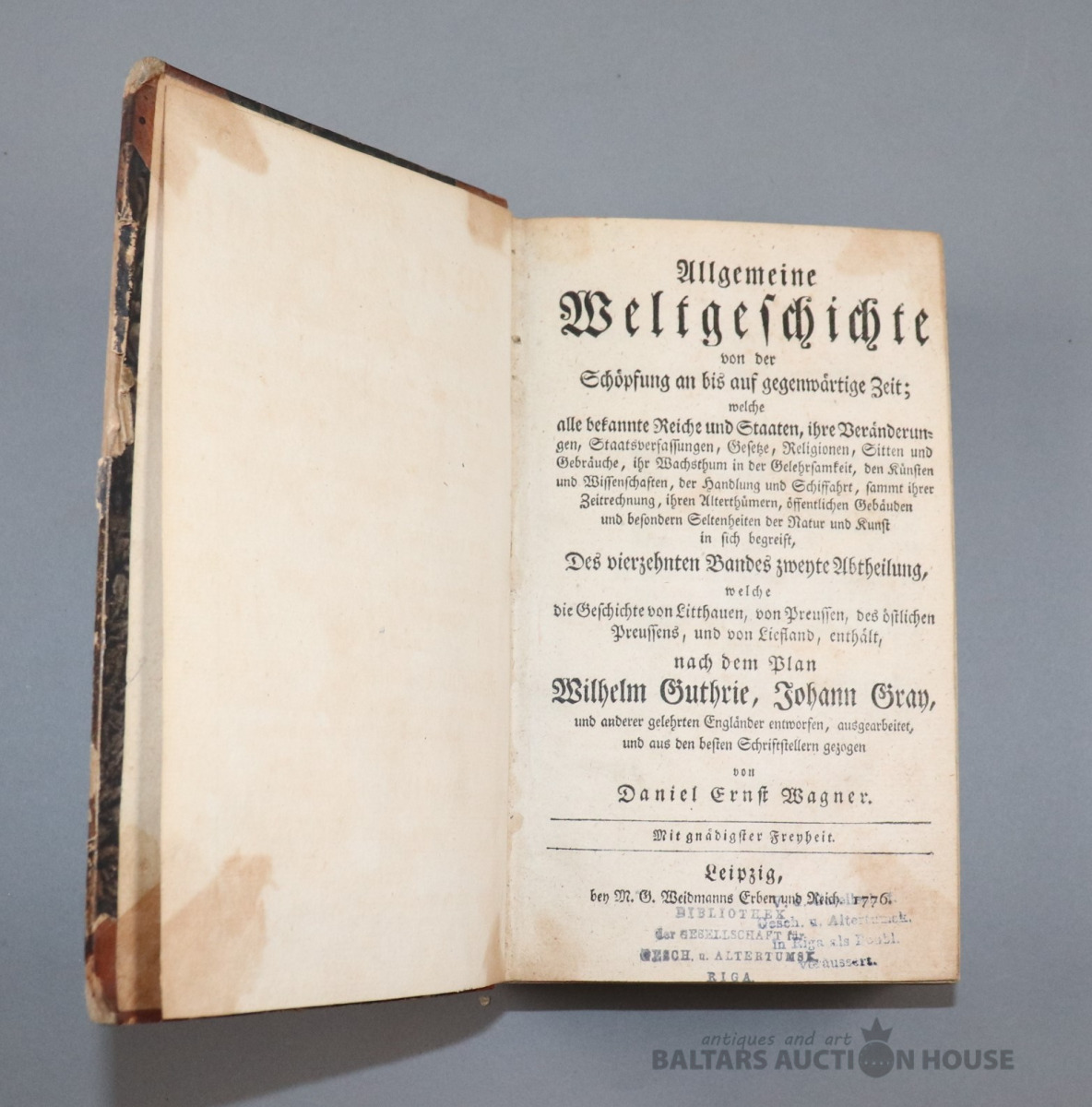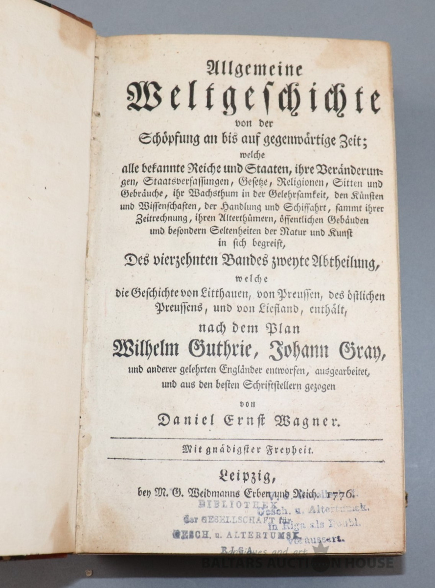 Allgemeine Weltgeschichte. Daniel Ernst Wagner. Lepzig, 1776.