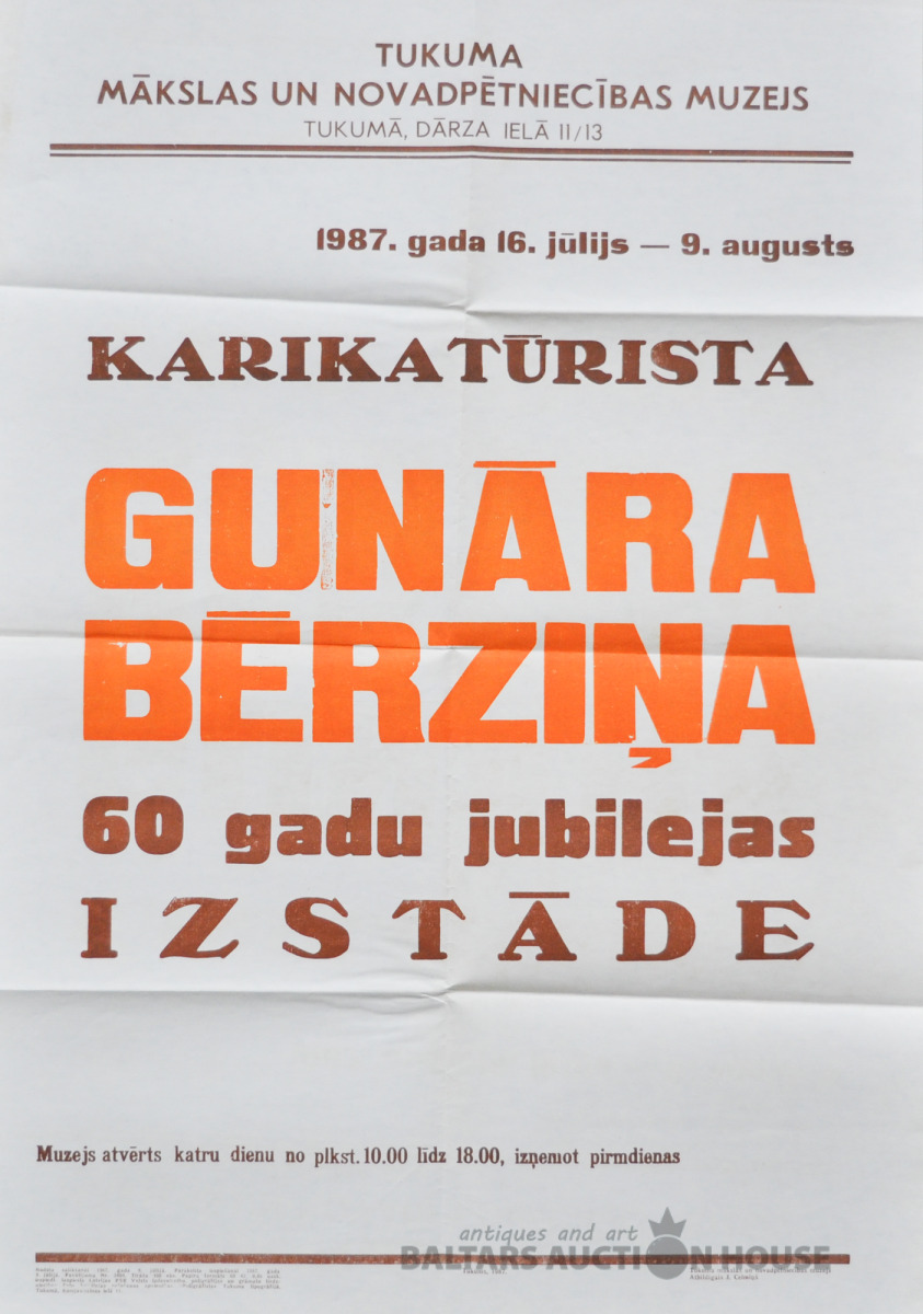 Karikatūrista Gunāra Berziņa 60 gadu jubilejas izstāde Tukumā. 1987. Tirāža 100 eks. 42x60 cm