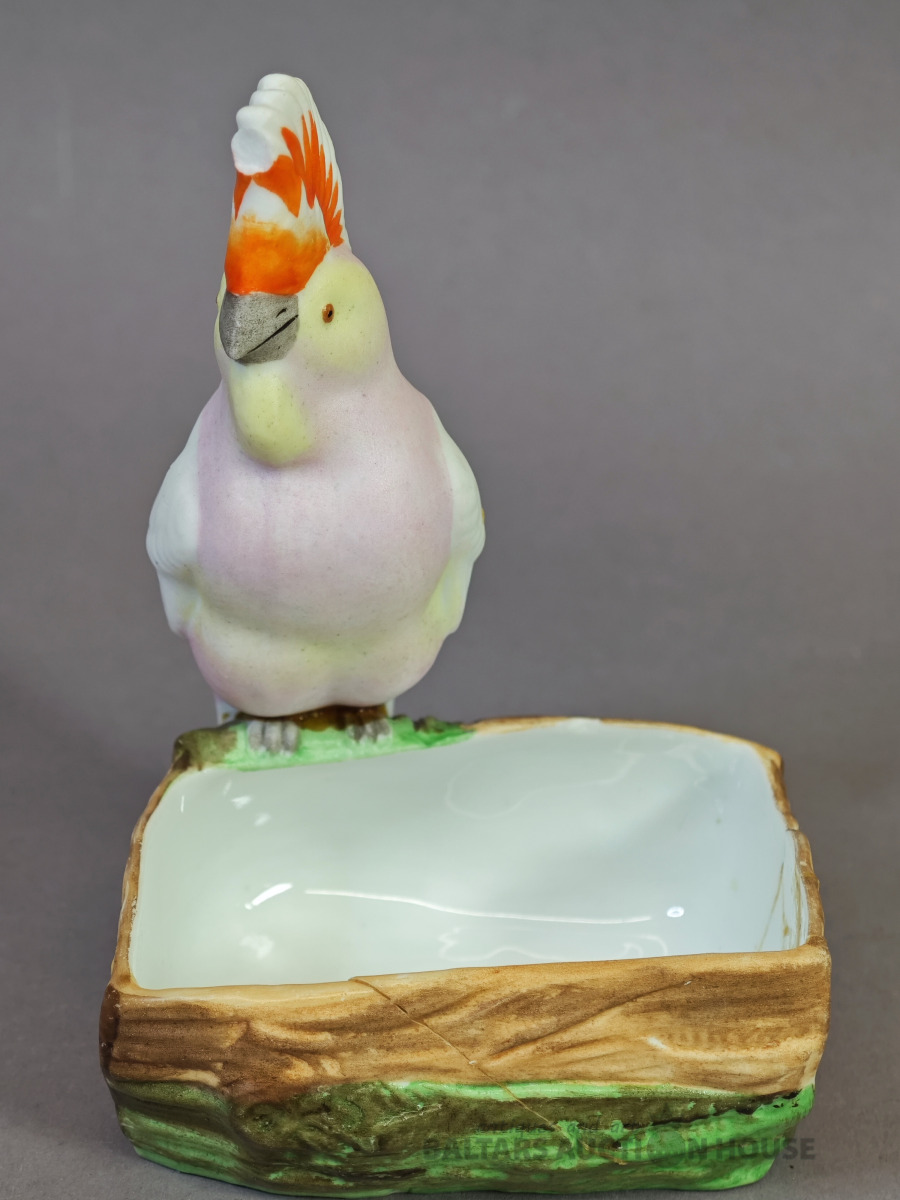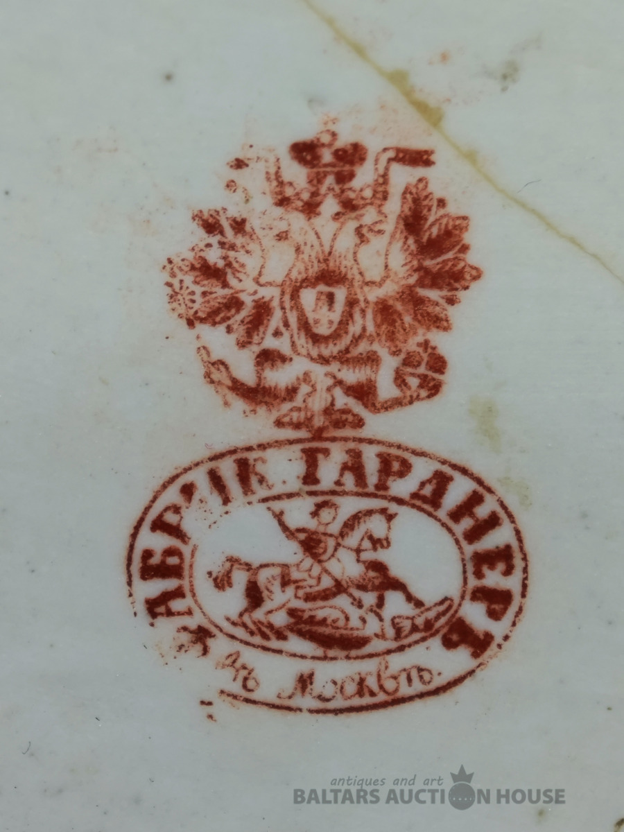 Porcelāna trauks ar papagaili, Gardners, Krievijas impērija, restaurācijai