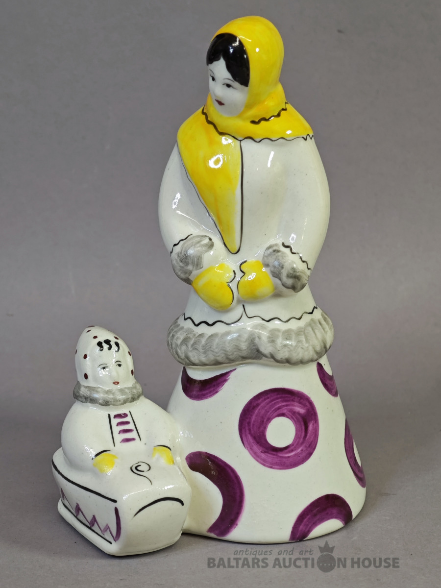 statuete Sieviete ar bērnu ratiņos, porcelāns, Gžel, PSRS, bez plaisam un nošķēlumiem