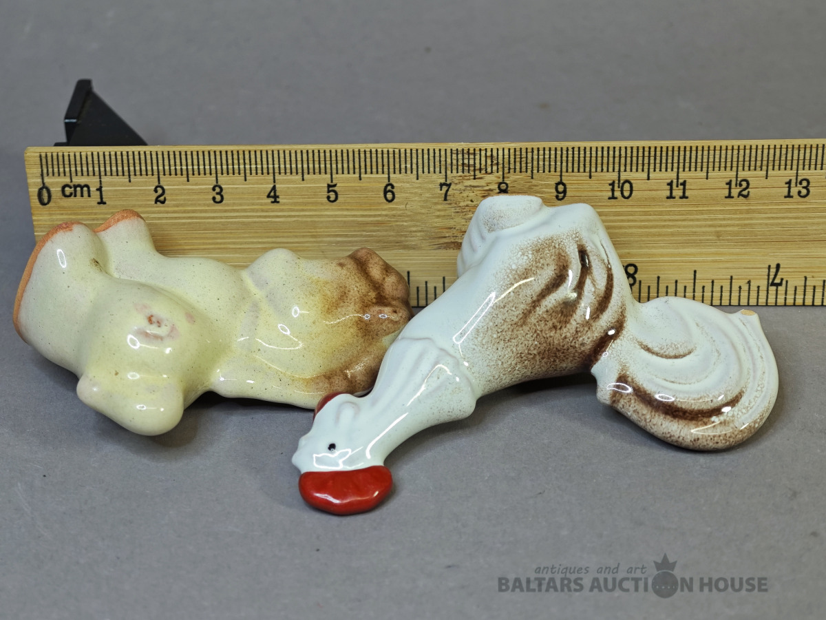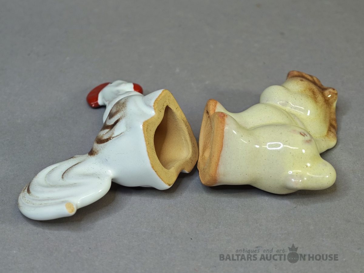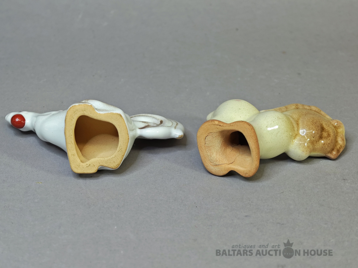 sikie statuetes, keramika, Rīga, vienai ir emalijas nošķēlums