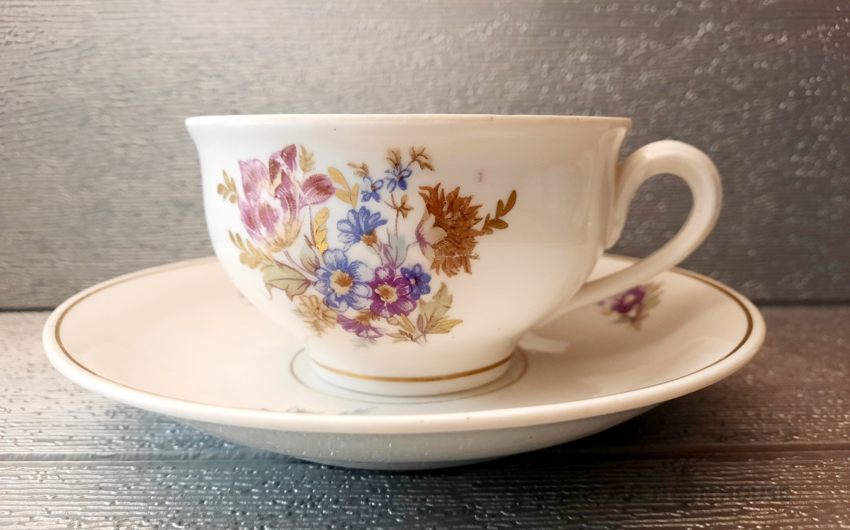 Kafijas/ tējas tasīte, ražota 30-jos gados Kuznecova fabrikā
