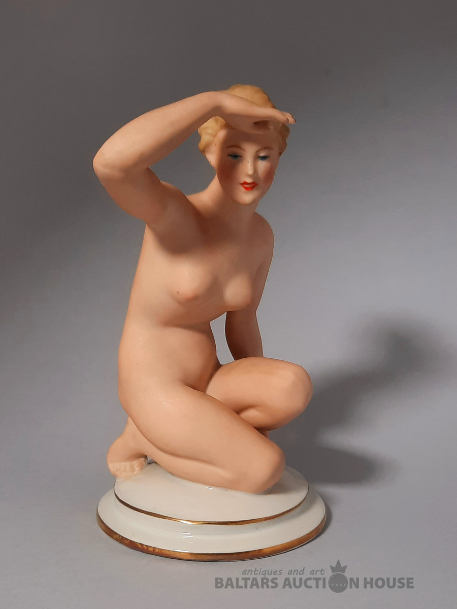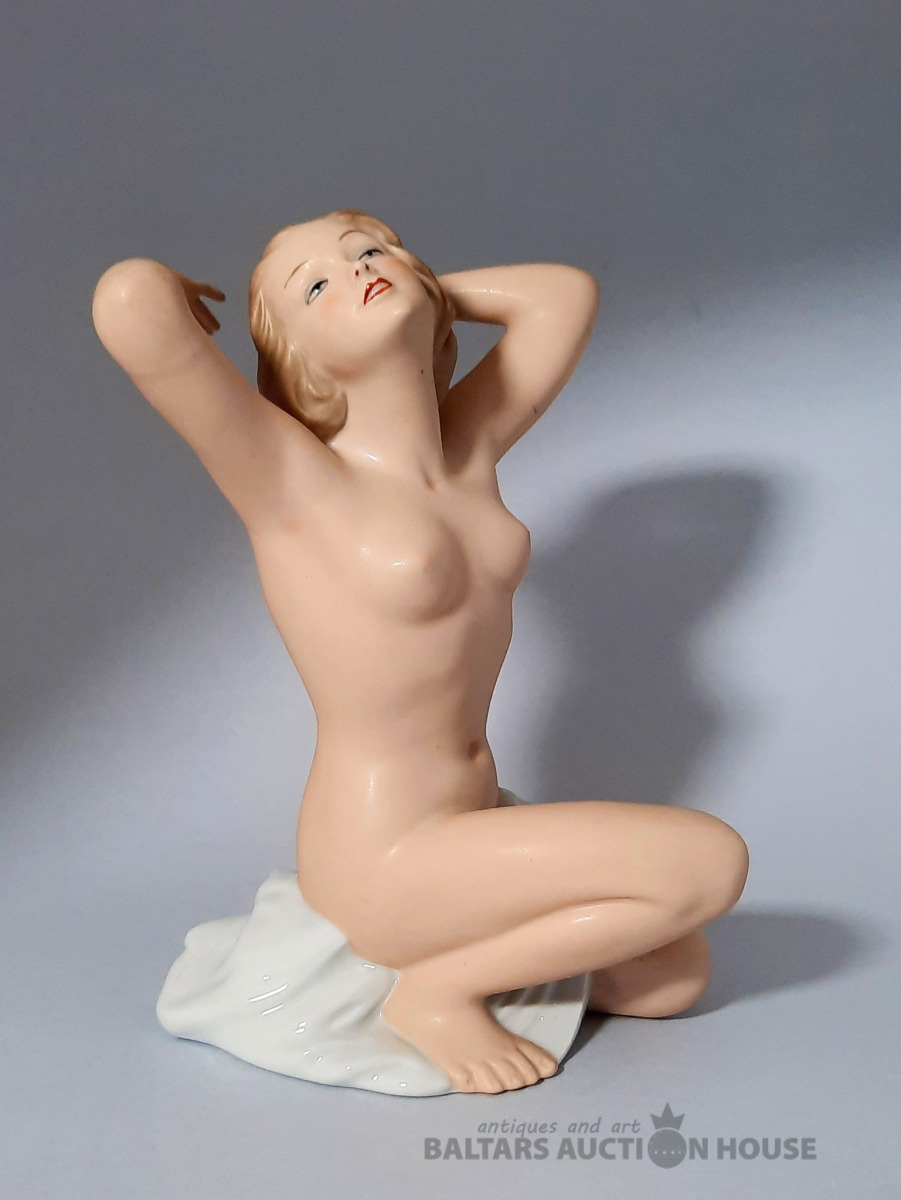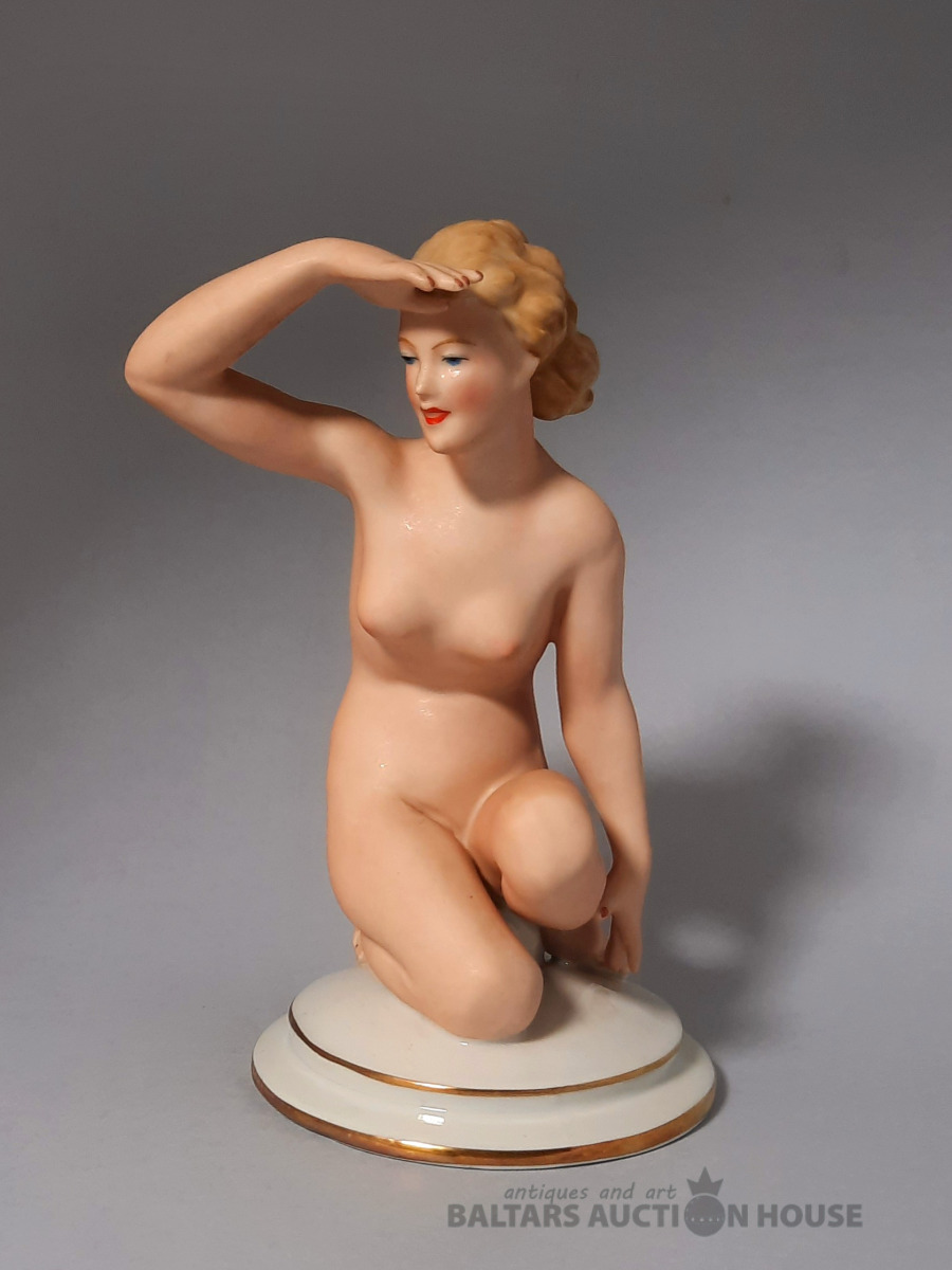 Džerolds Porzelāns - Agrīna kailas sievietes porcelāna figūriņa, KAILS. 1937.–1949. g. Augstums 15 cm.