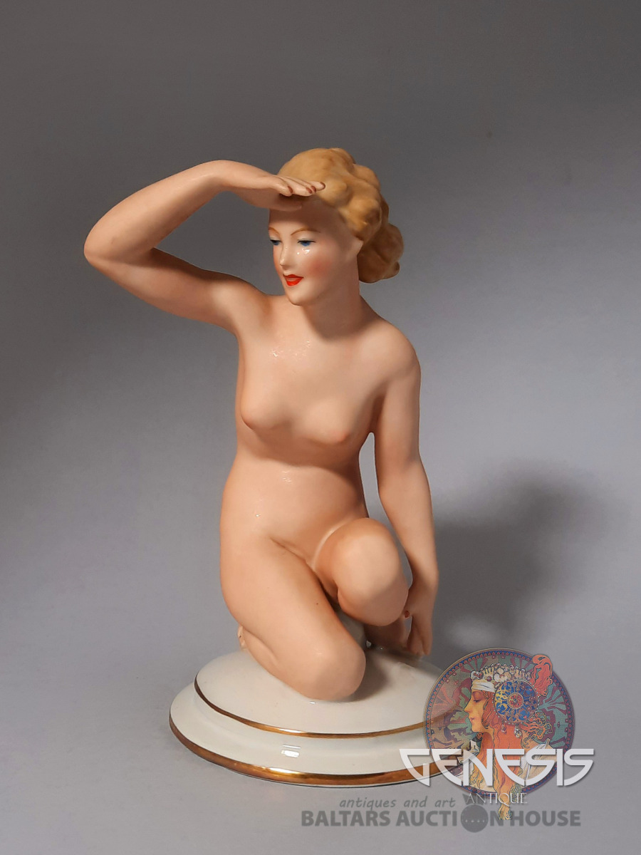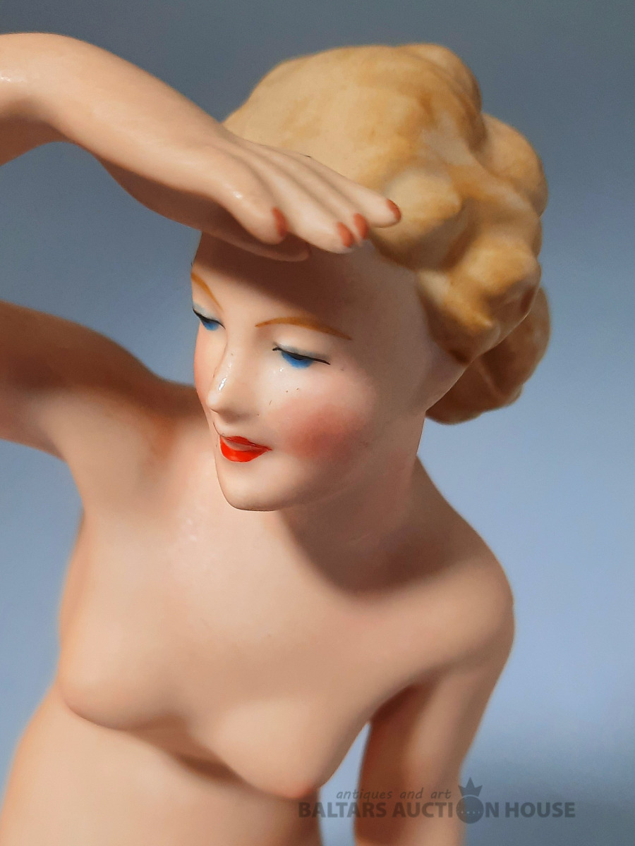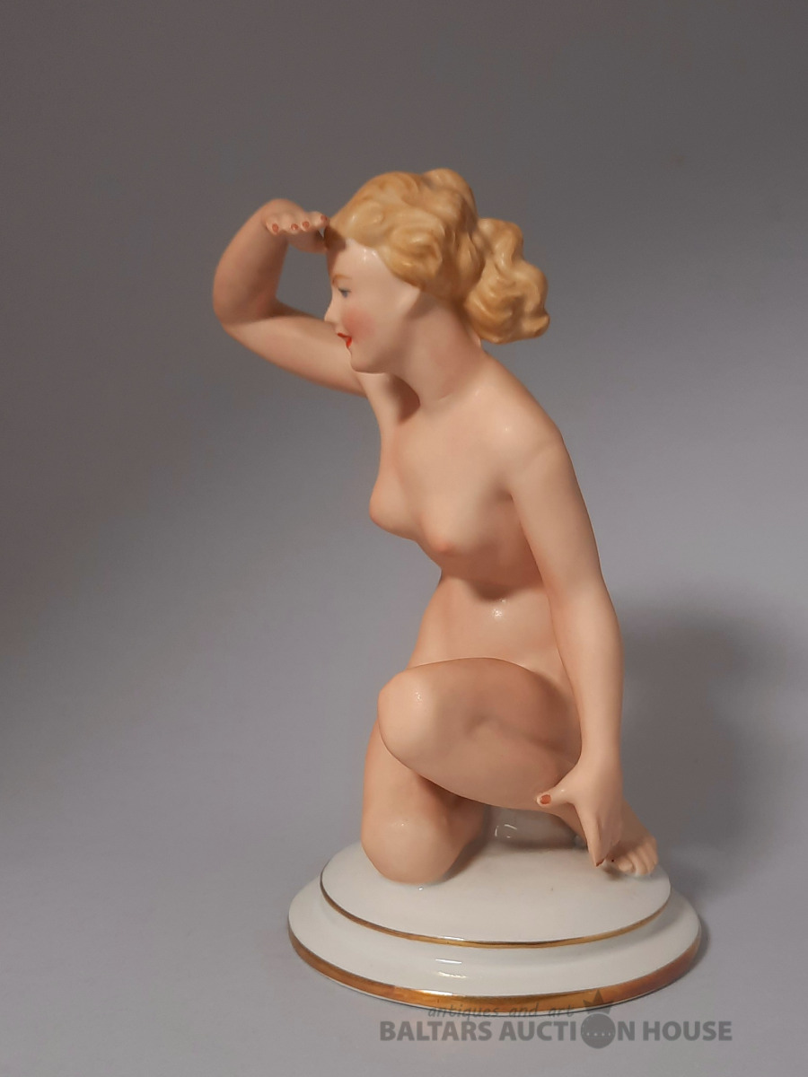 Džerolds Porzelāns - Agrīna kailas sievietes porcelāna figūriņa, KAILS. 1937.–1949. g. Augstums 15 cm.