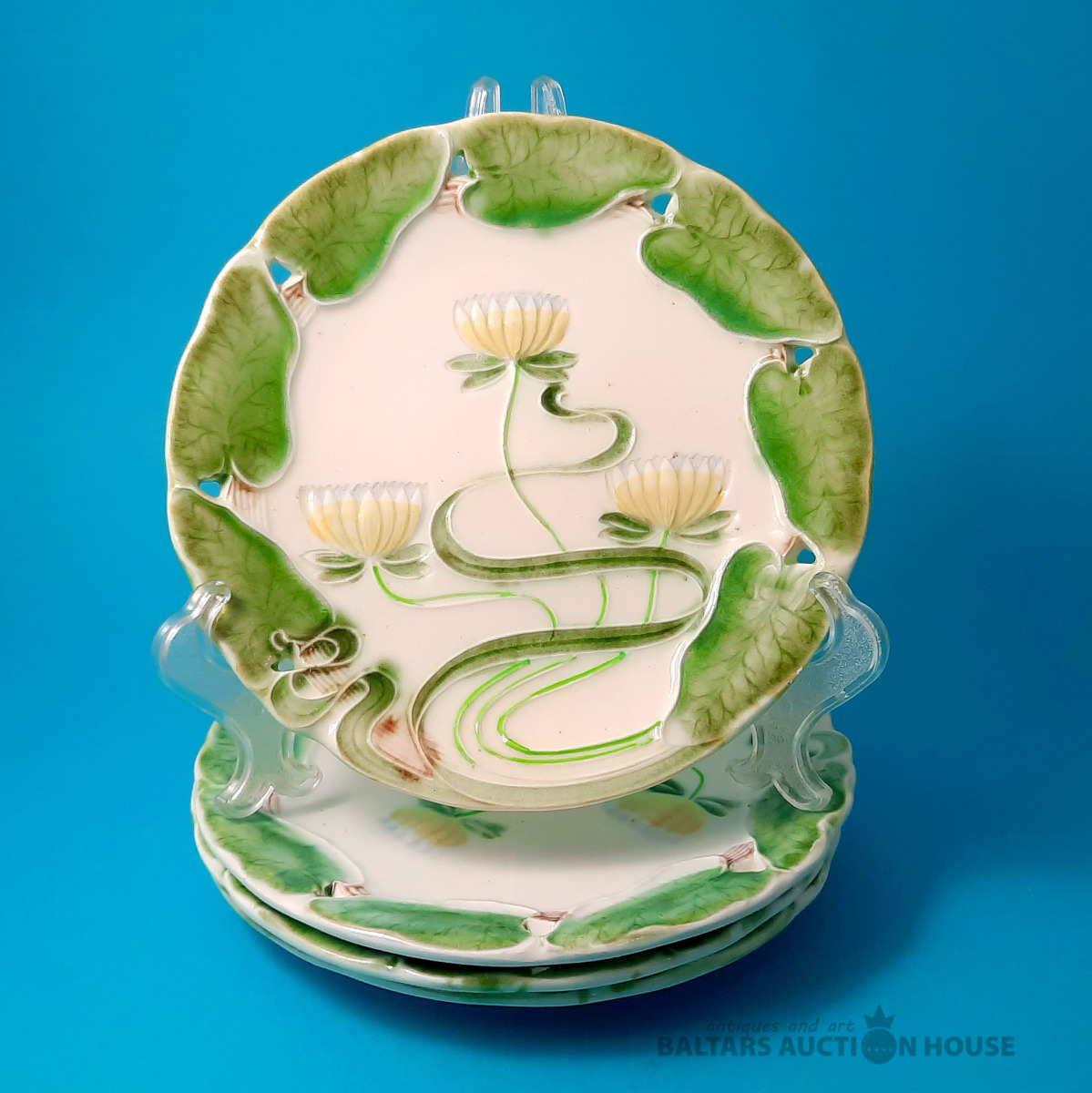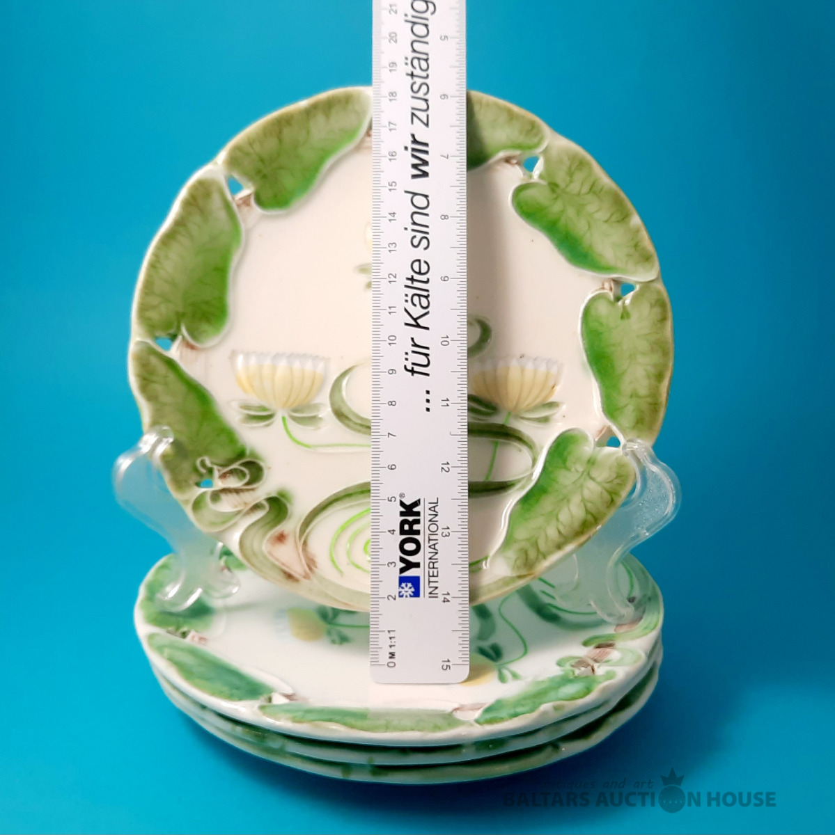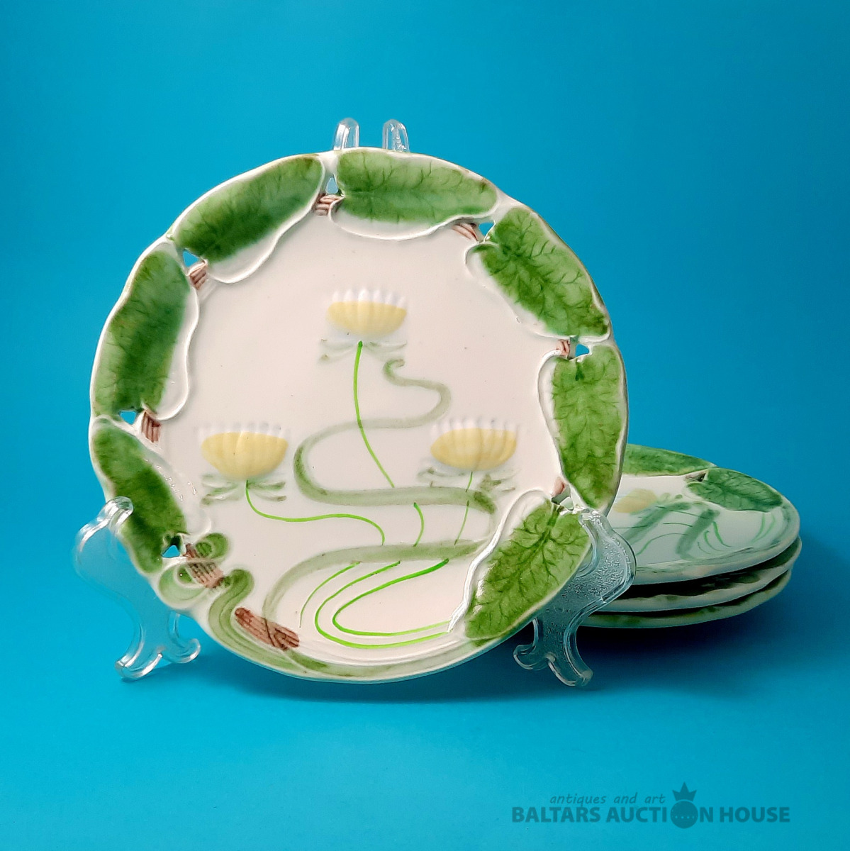 4 Majolika jūgendstila "Ūdensrozes" šķīvji Apmēram 1900. gads. Ražotājs: Villeroy & Boch. Diametrs: 17 cm.
