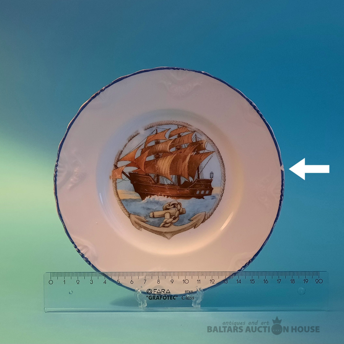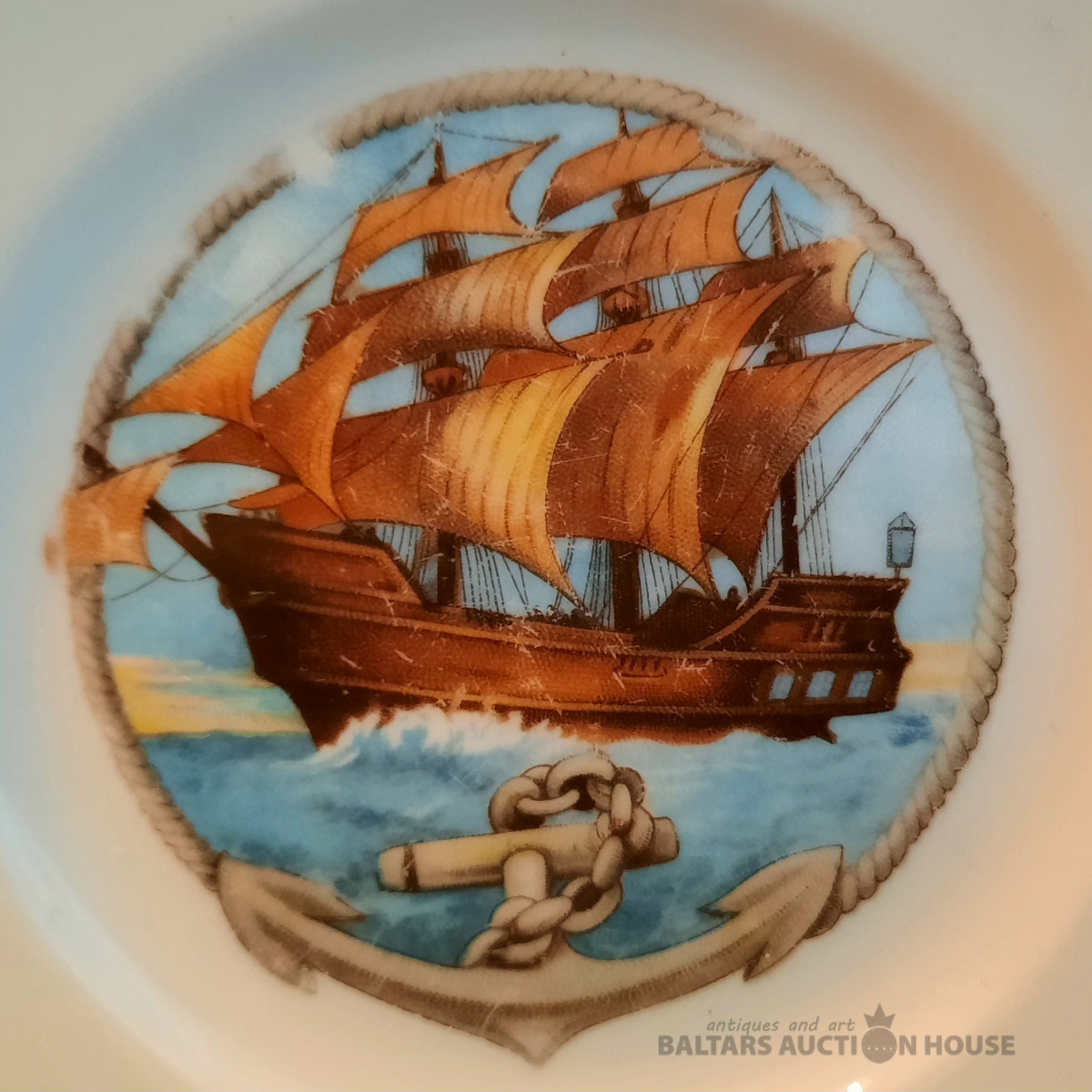 Dekoratīvs šķīvis "Buru laiva" Sab.M.S.Kuzņecov. Rigā.1920-1933 g.Stāvoklis fotoattēlā.