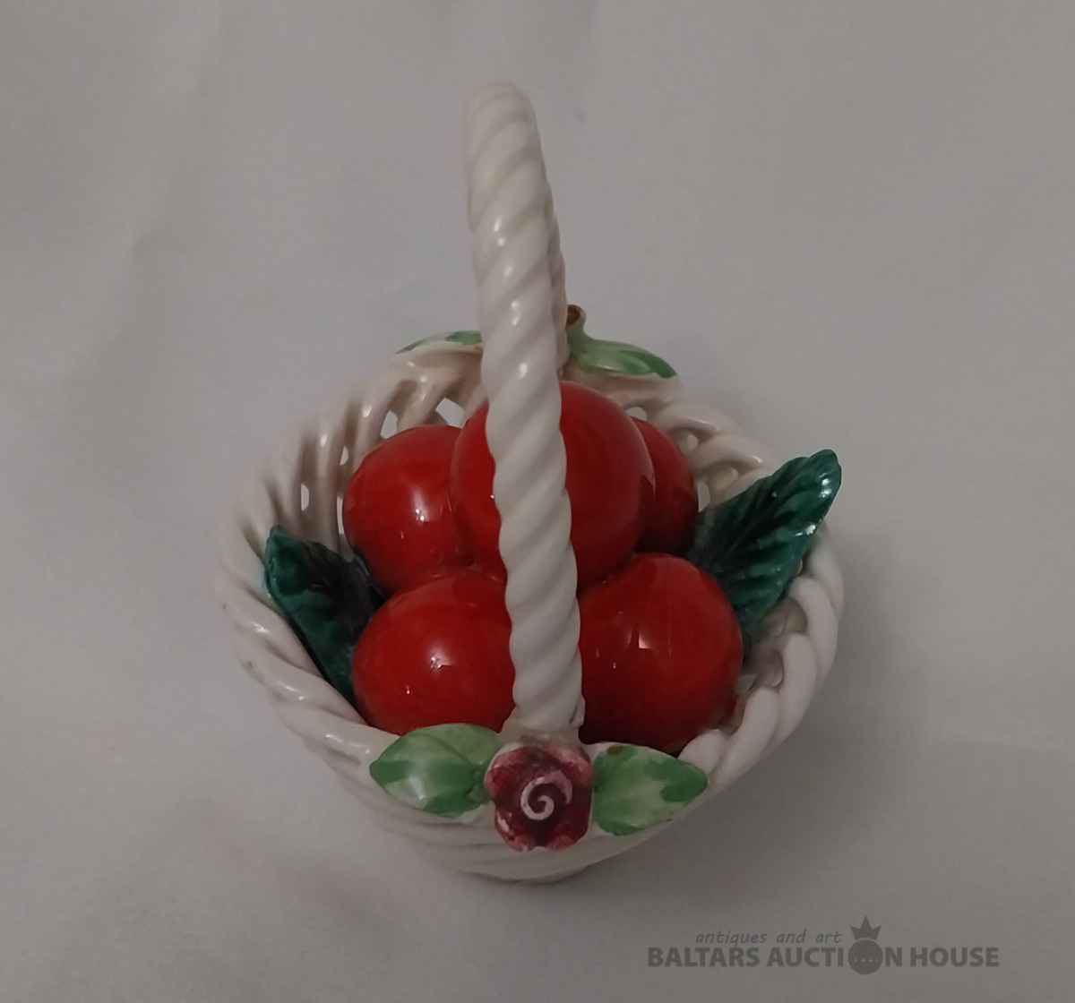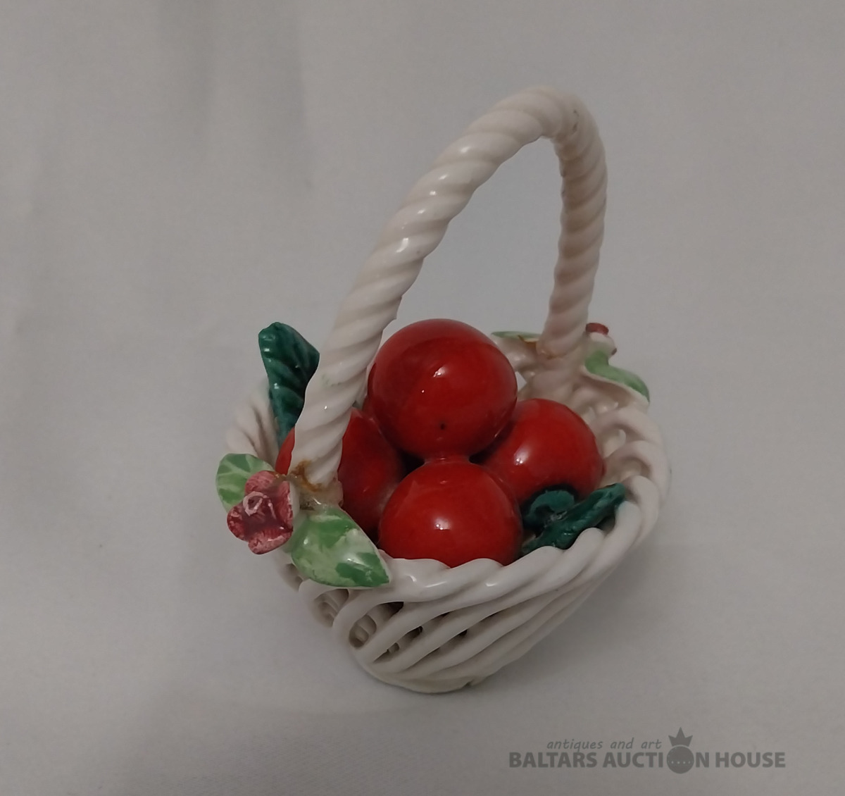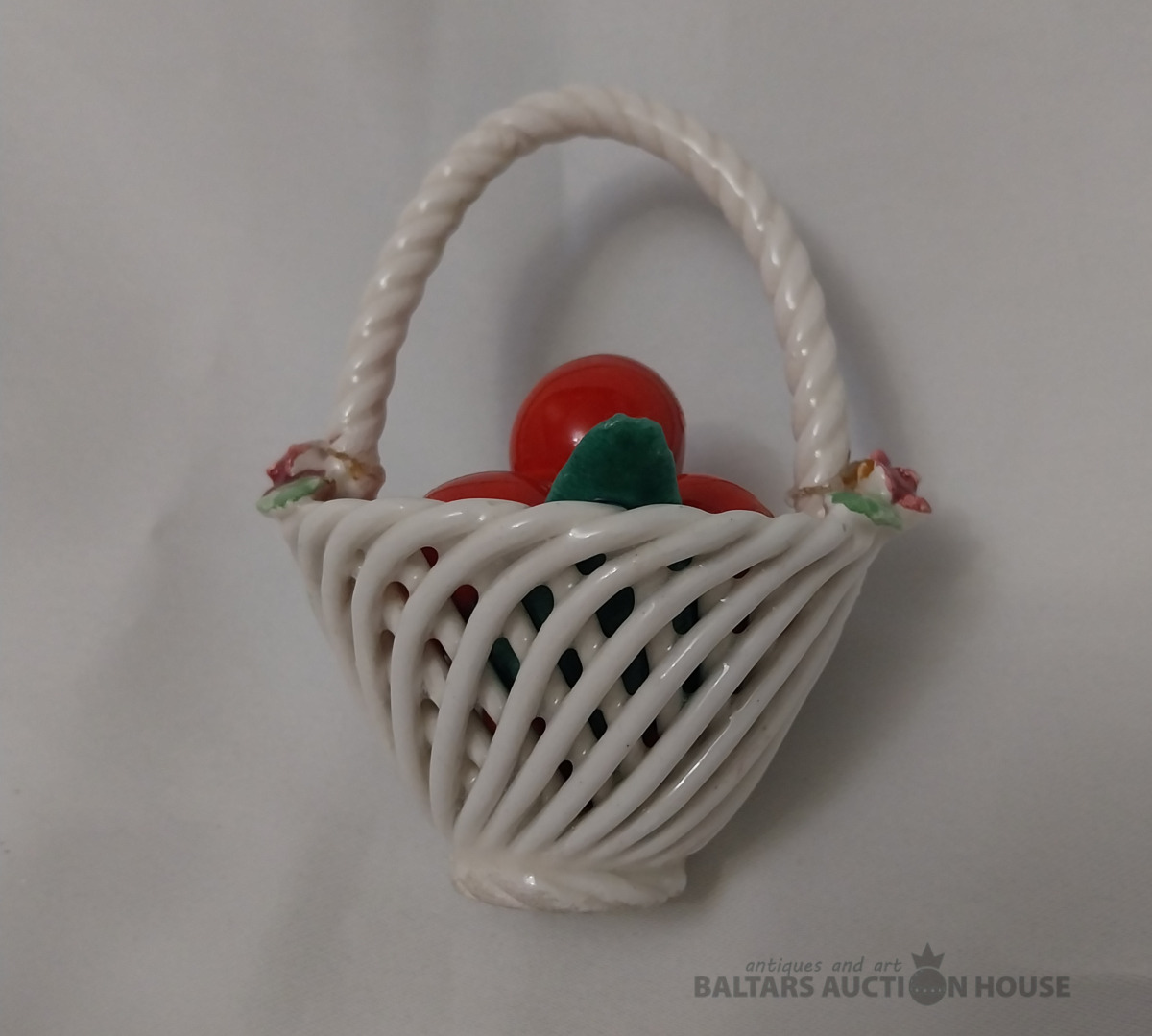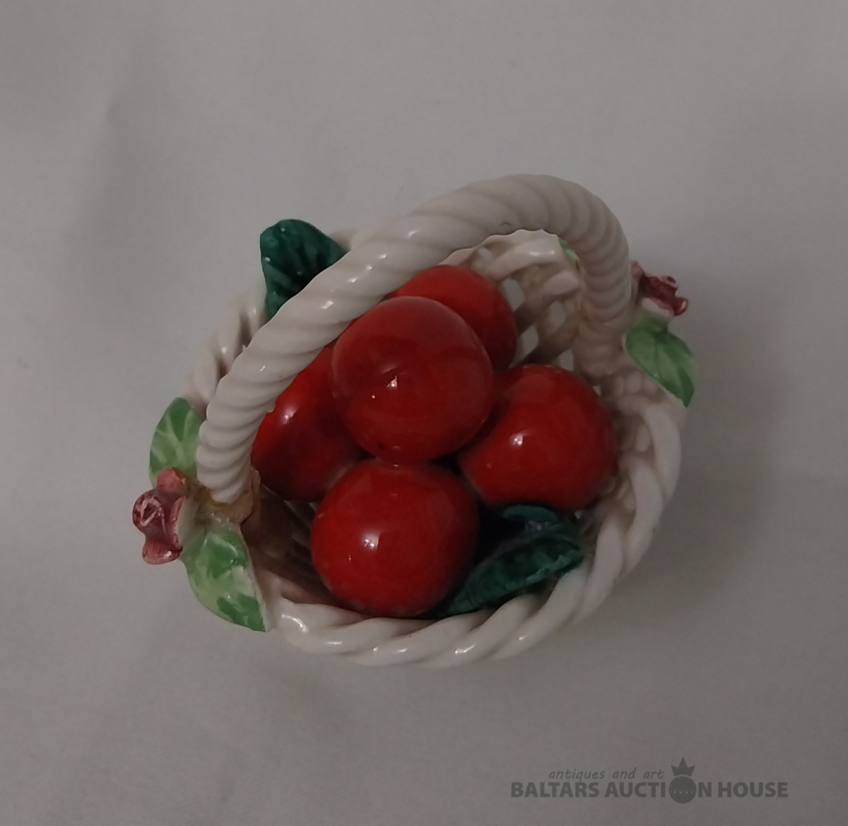 Porcelāna dekoratīvais groziņš ar odziņam. H 9.5 cm D 7 cm. Itālija.